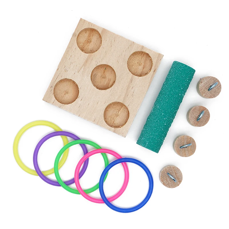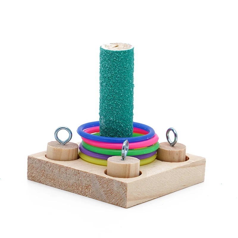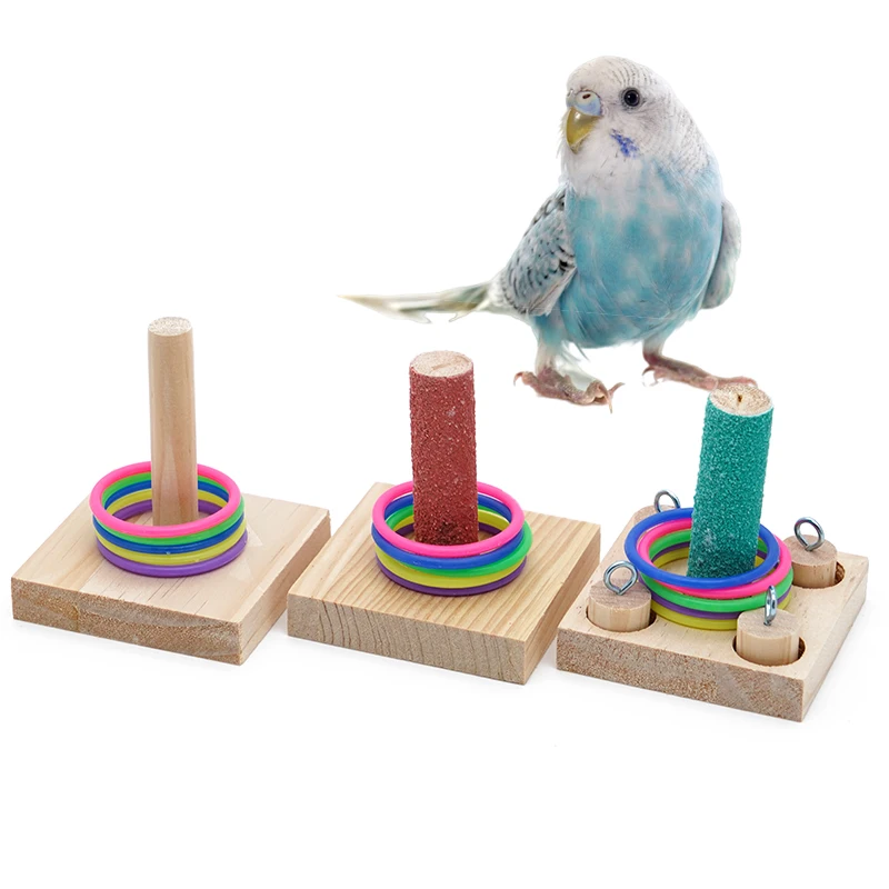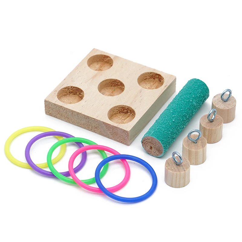 Juego de juguetes de entrenamiento de aves, bloques de madera, rompecabezas, pelota oscilante para pájaros, juguete de pie, anillos de plástico, suministros de inteligencia, 1 Juego