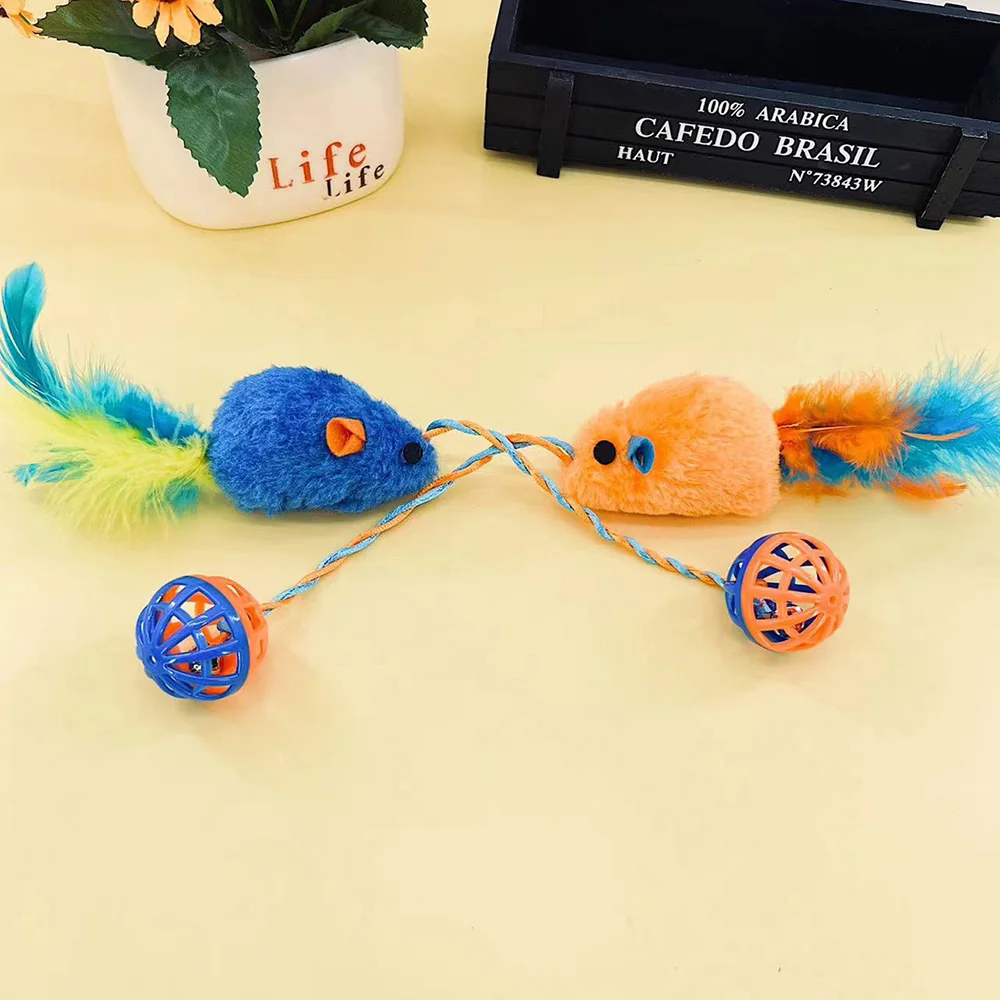 Juego de juguetes para gatos: ratón de peluche + bolas de campana de plástico: juguetes interactivos para masticar para gatos, dentición de gatitos, juego de mascotas
