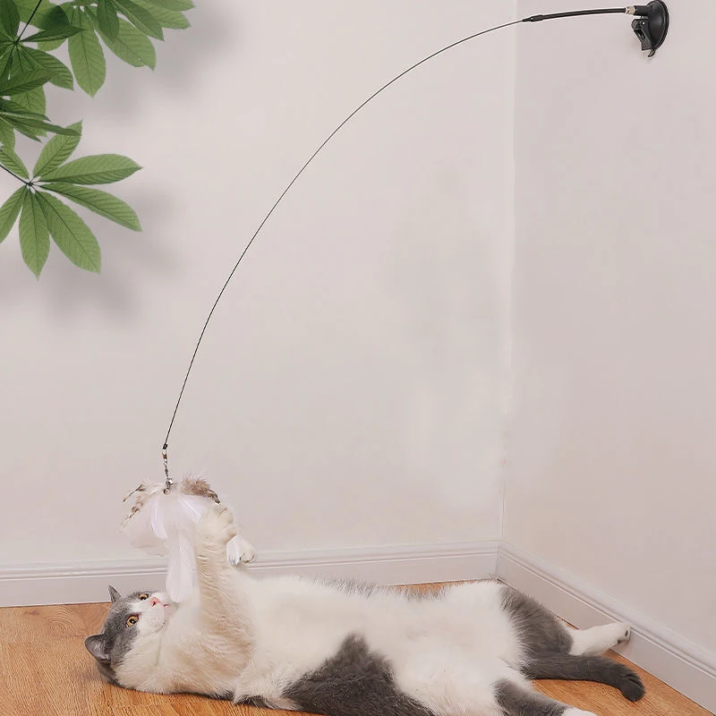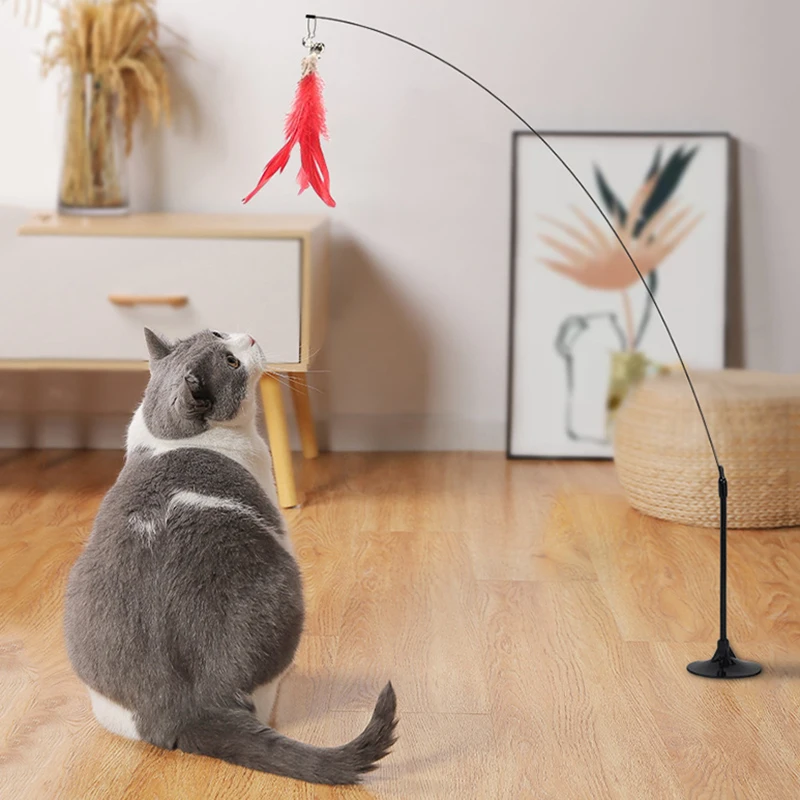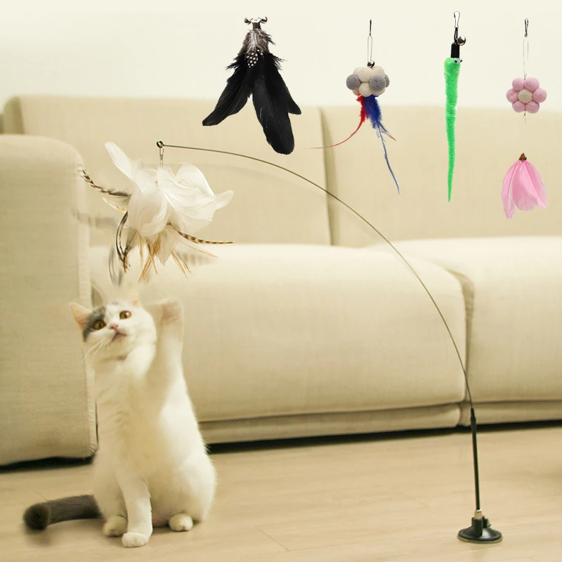 Juego de juguetes interactivos con ventosa para gatos, juguete divertido de plumas para gatitos, 8 piezas
