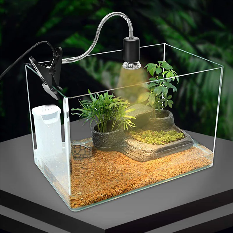 UVA + UVB 3,0 Juego de lámparas para reptiles para mascotas Soporte de lámpara de calefacción de tortuga Mini bombilla de calor para mascotas Anfibios Lagartos Controlador de temperatura Luz