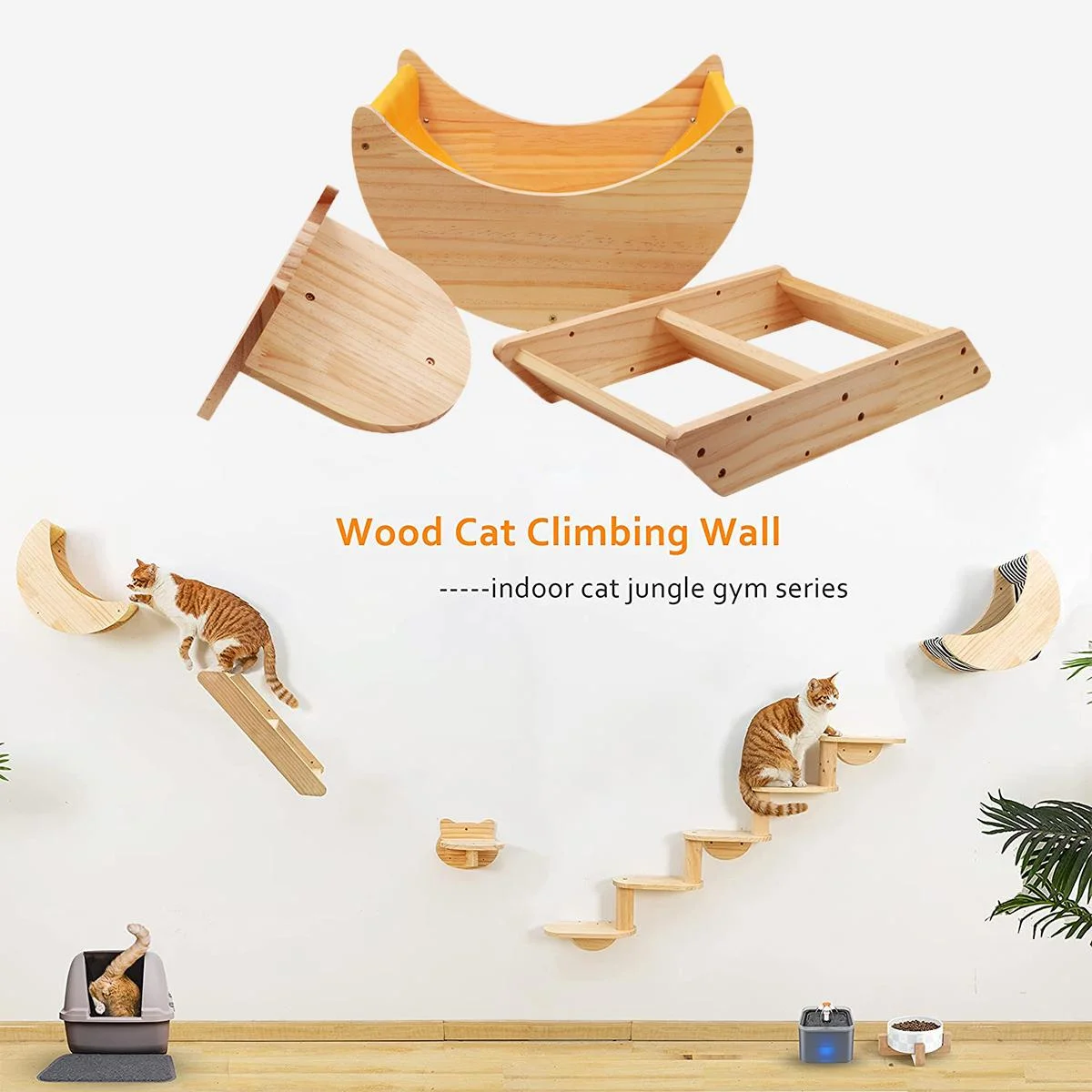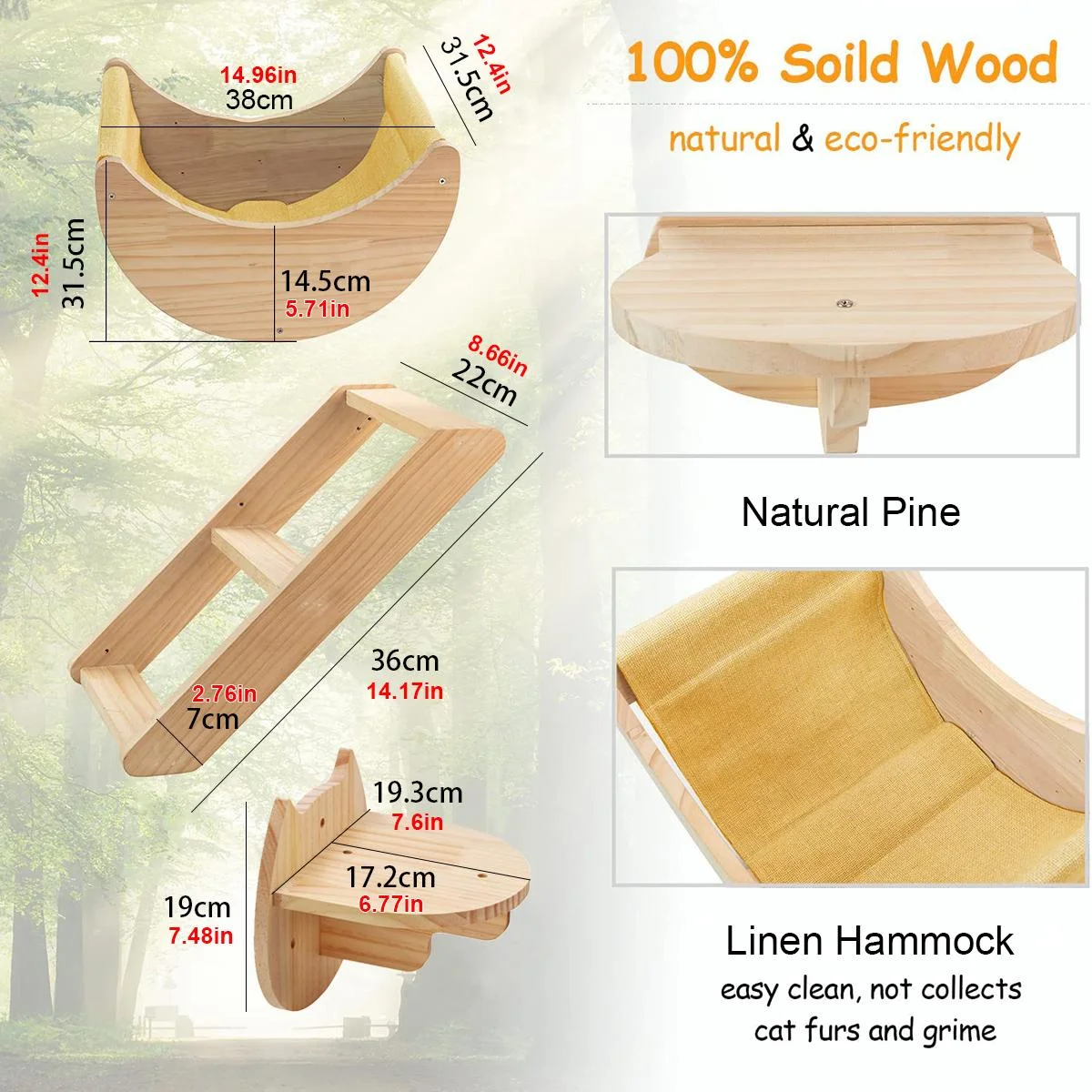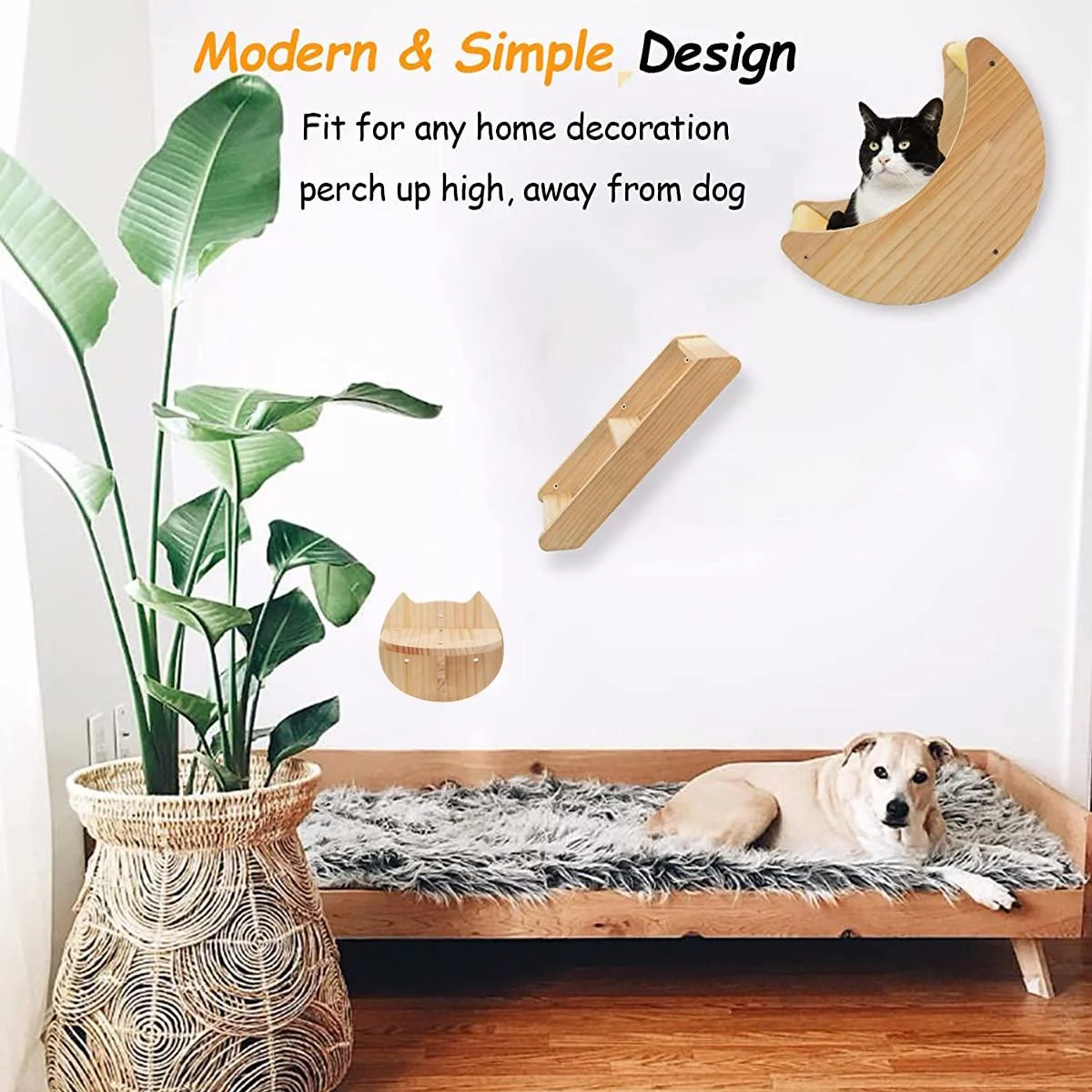 Juego de muebles de pared resistentes para gatos, hamaca en forma de luna, escalera de madera para escalar, tablero de gatos para dormir, jugar y escalar, 3 uds.