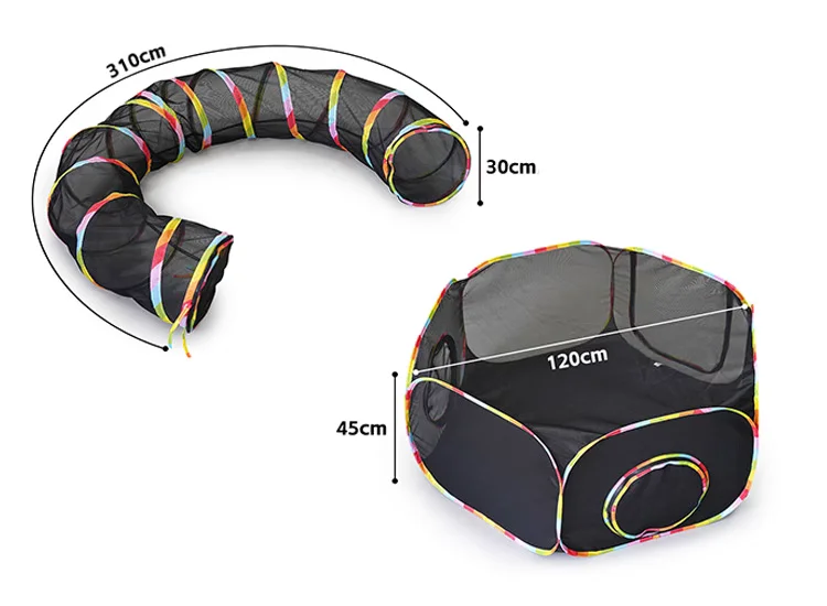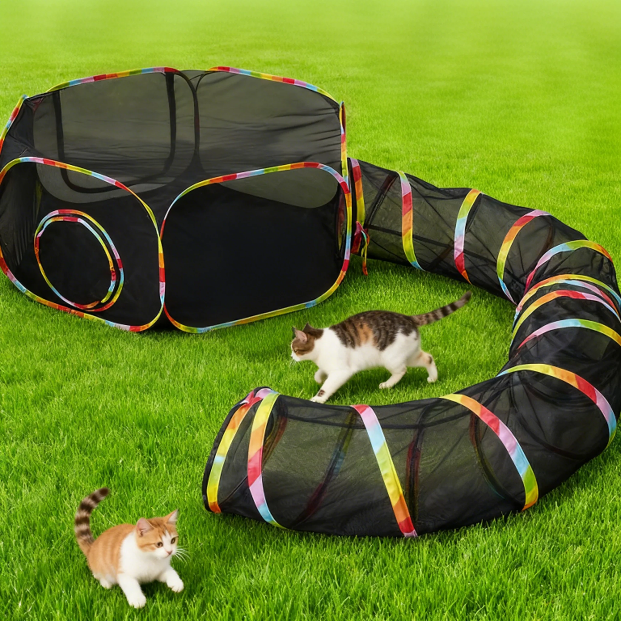 Juego de parque infantil con recinto para gatos para interiores y exteriores, túnel de tienda portátil y diseño apto para animales pequeños para gatos/gatitos