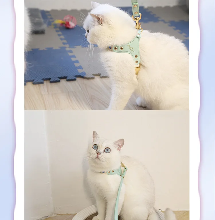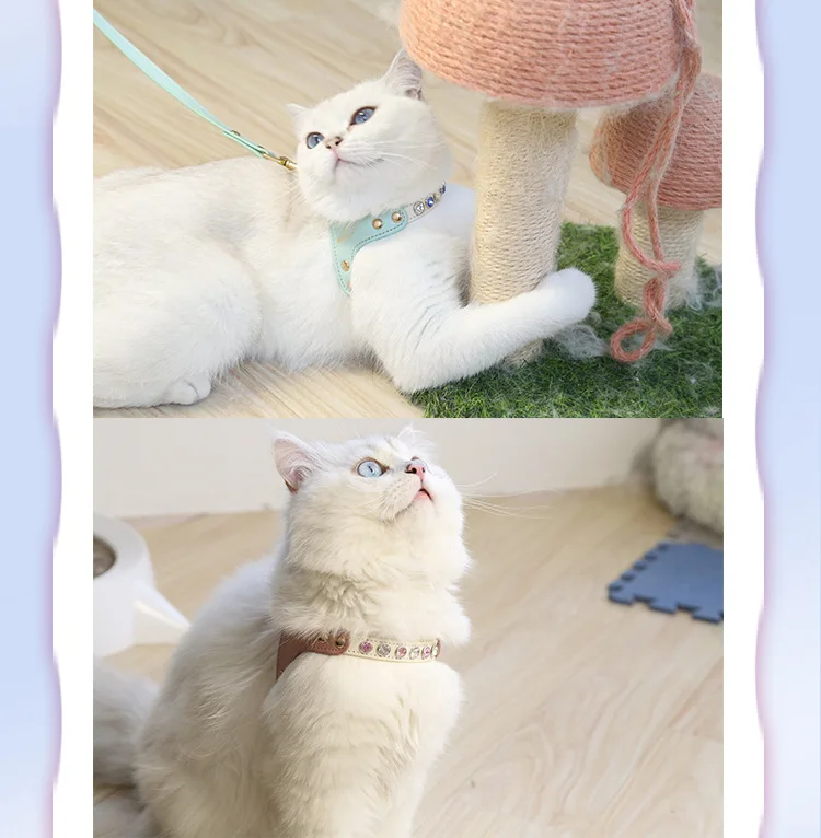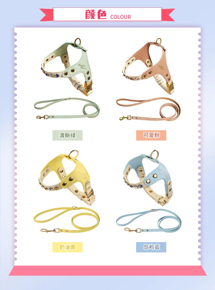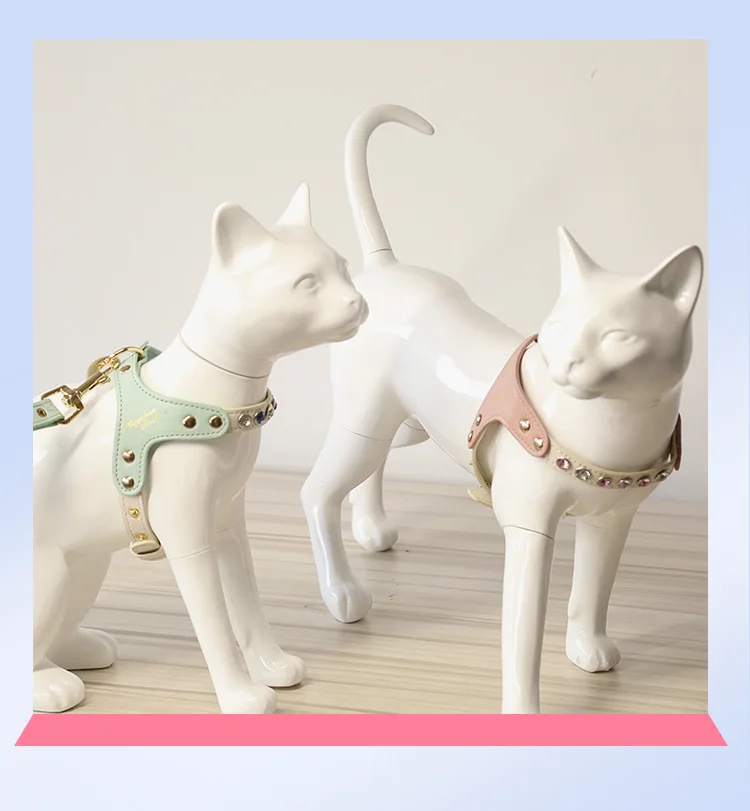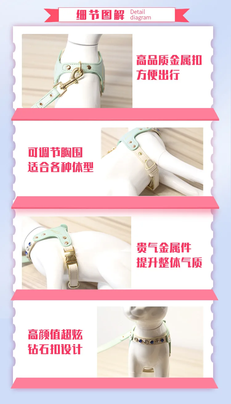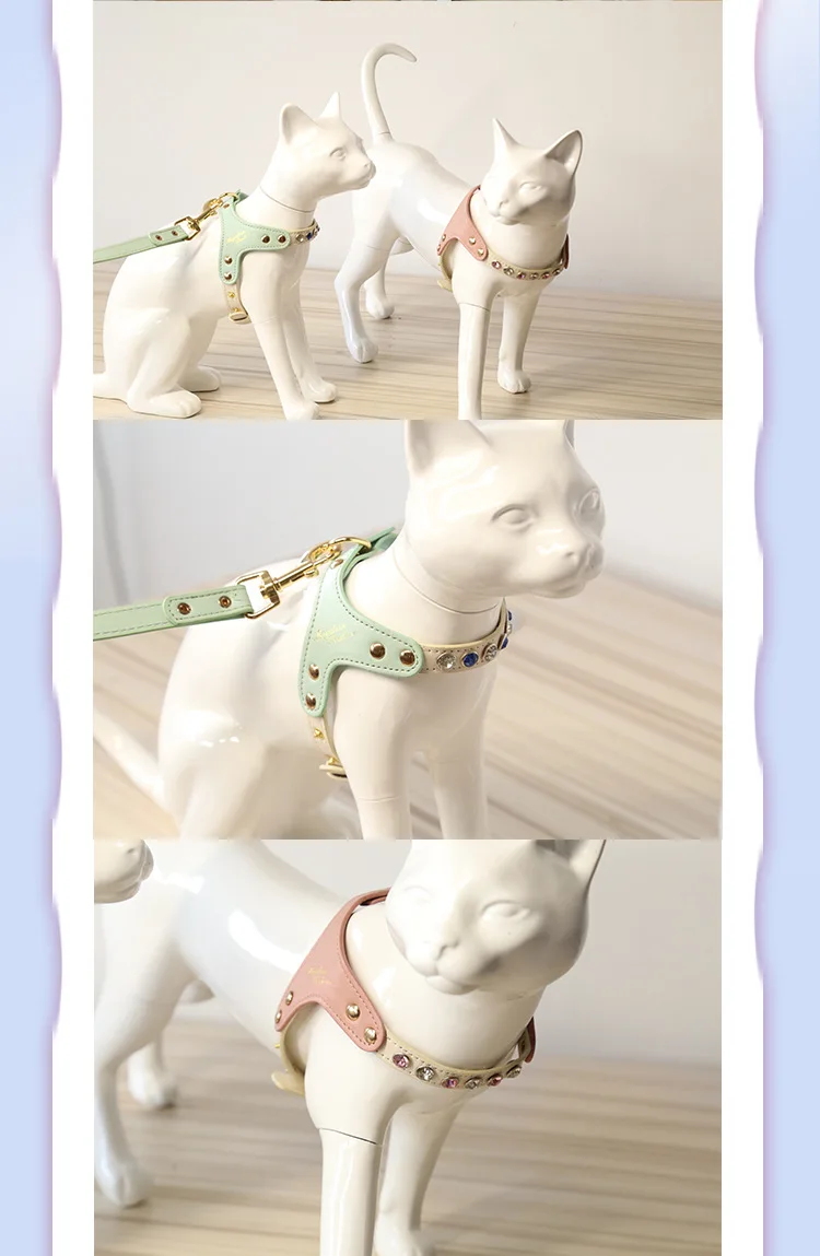 Juego de pecho y espalda de diamantes para perros y gatos de cuero PU, correa para mascotas pequeñas, cuerda para caminar para perros, correa para el pecho para mascotas