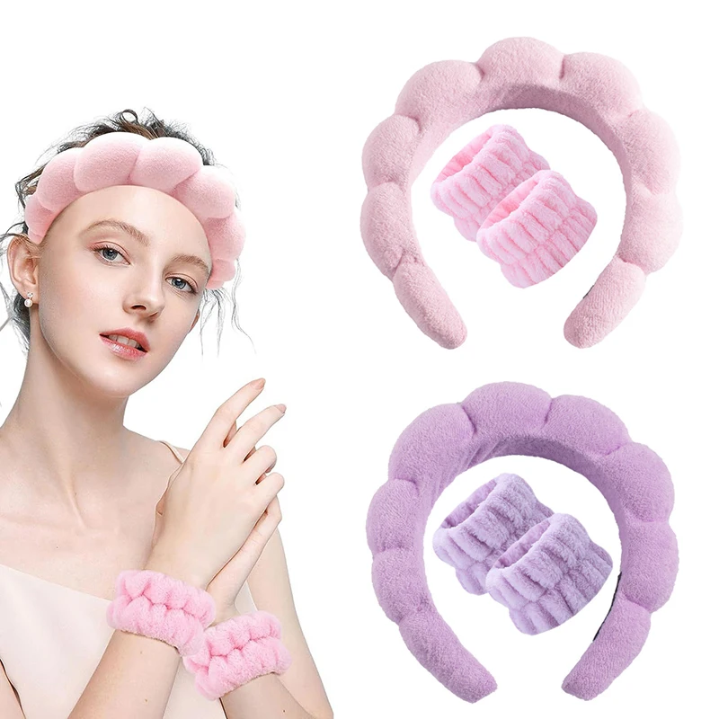 【Material de alta calidad】 - Esta diadema de spa está hecha principalmente de esponja y tela en bucle. El forro de esponja lo hace súper suave, cómodo de usar y tiene una fuerte absorción, lo que puede evitar que el cabello se moje al lavarse la cara. Lavar una diadema facial no dañará el cuero cabelludo y usarla todo el día no será incómodo.