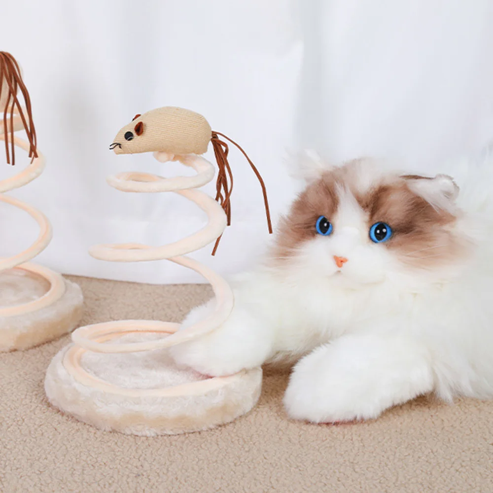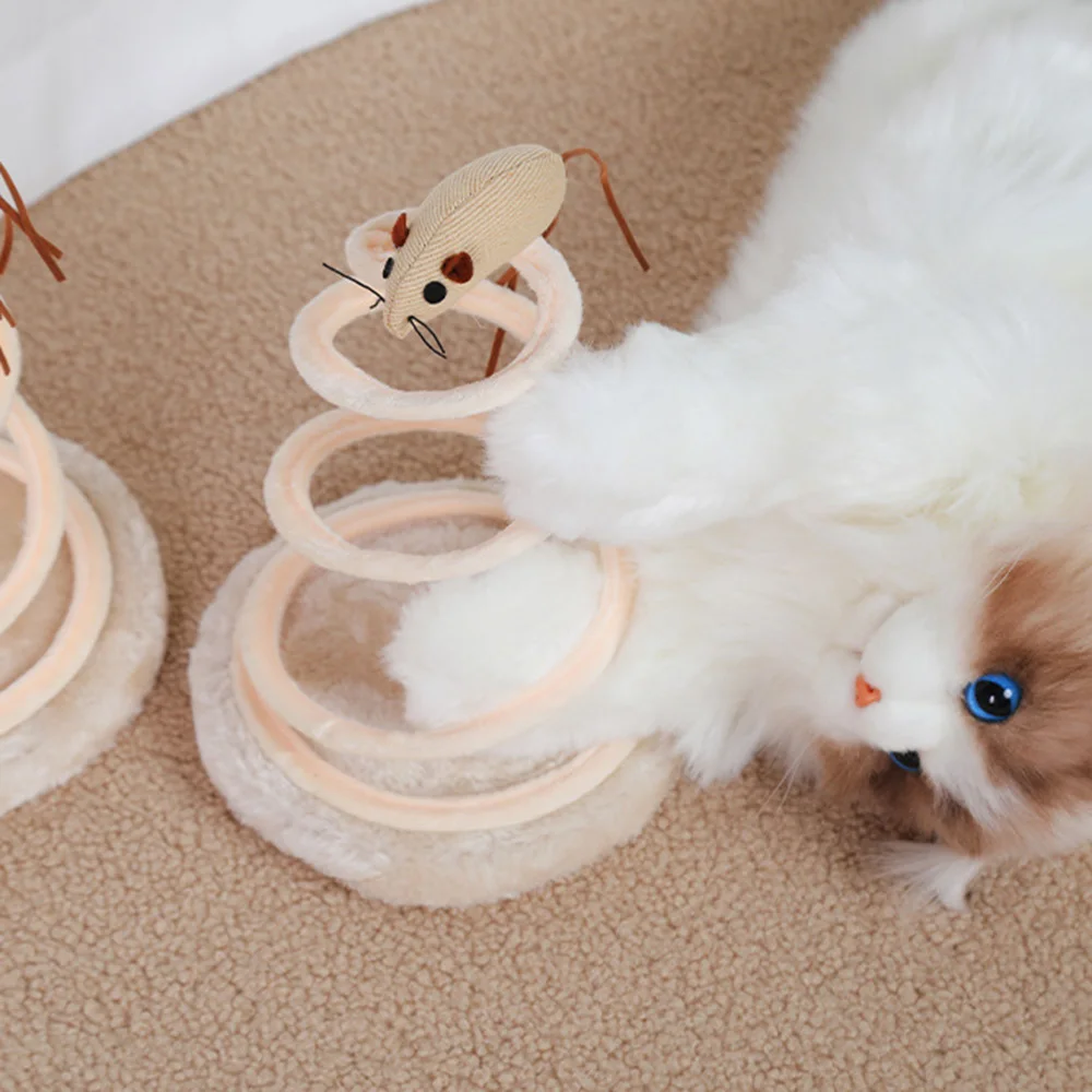 Juego de rascador y juguetes para gatos, almohadilla rascadora de disco de lino con resorte de acero en espiral + ratón de lino, juguete duradero para rascar gatos para el cuidado de las uñas