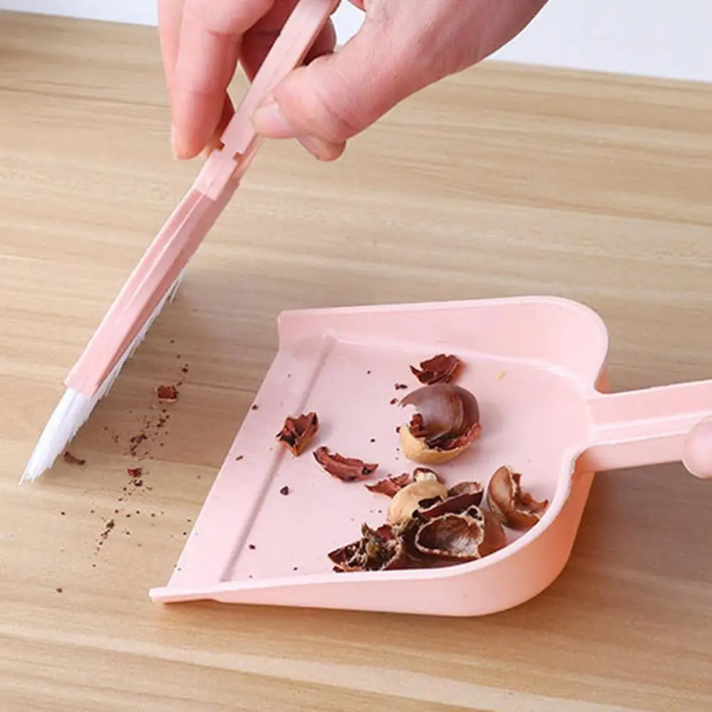 Colector de polvo de mano y cepillo con cerdas suaves para hacer frente a pequeños desechos en espacios reducidos.