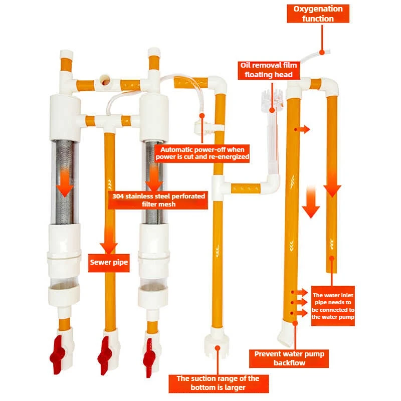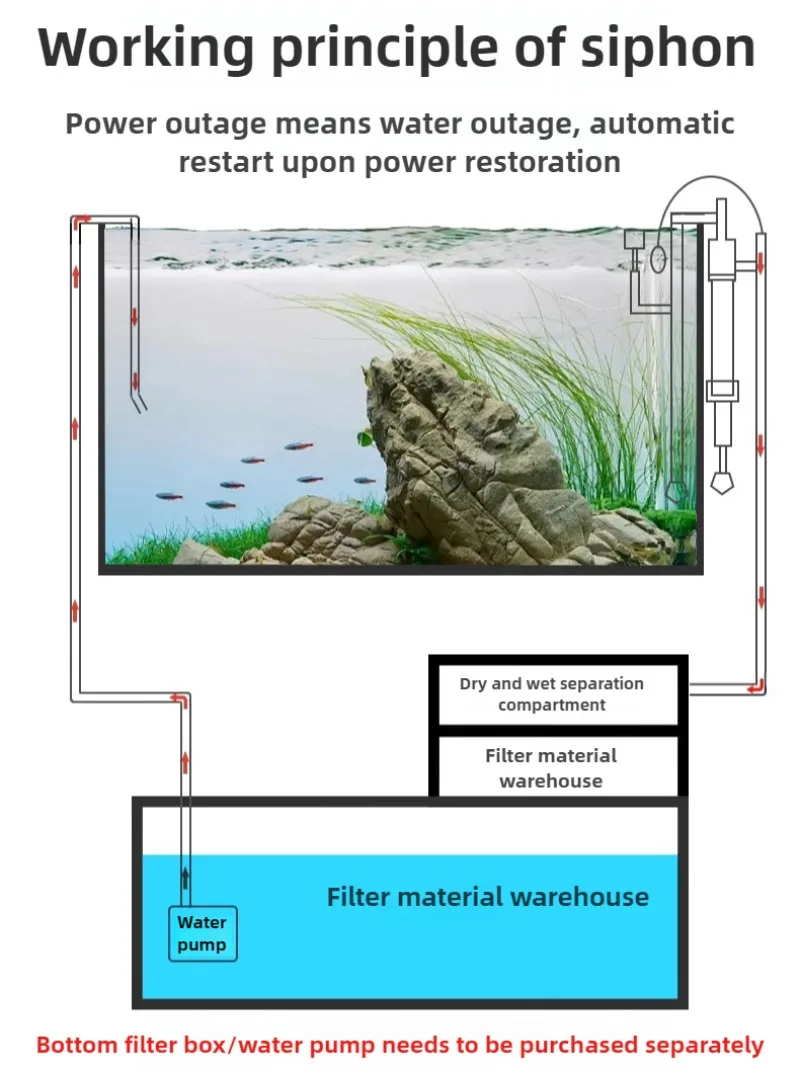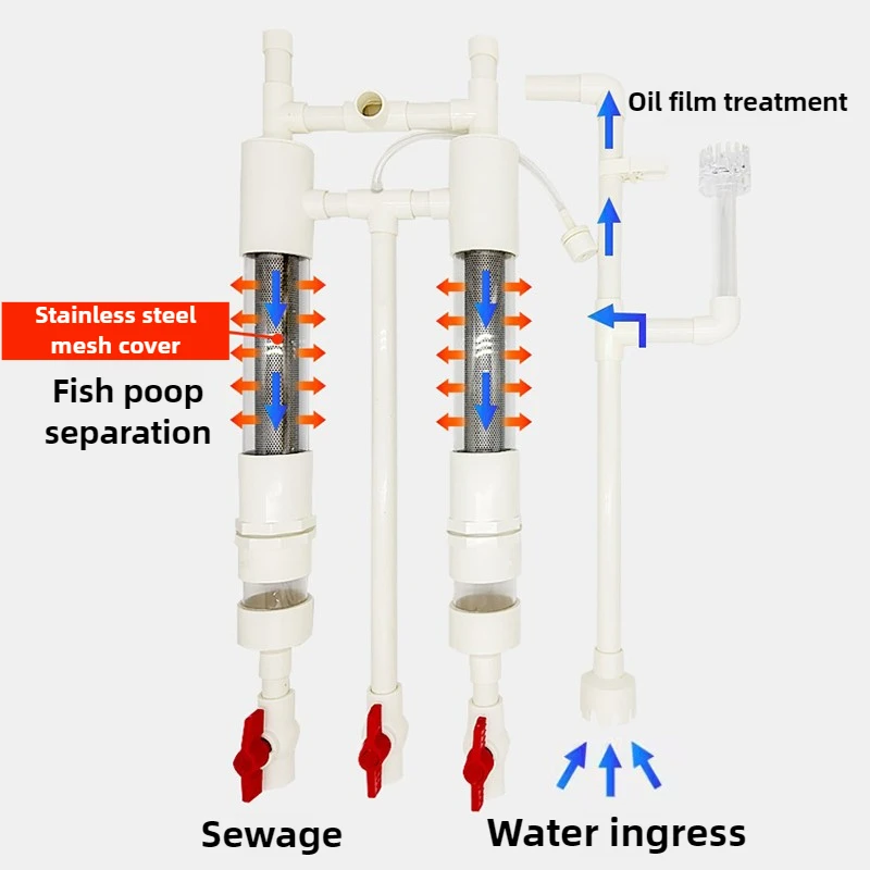 Juego de sistema de filtración de sifón para pecera, filtro de inodoro para peces, separador de feeces de malla, accesorios de filtración de sifón, suministros para mascotas
