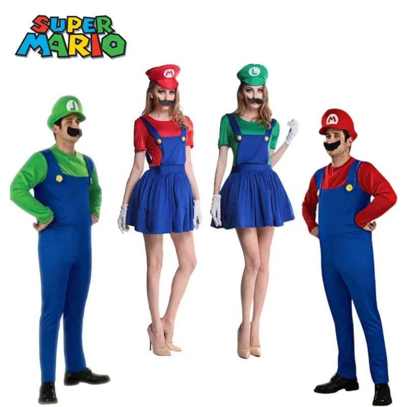 Juego Super Marios Bros fantasía hombre mono mujer vestido Anime Cosplay disfraz carnaval disfraces de Halloween con sombrero y bigote