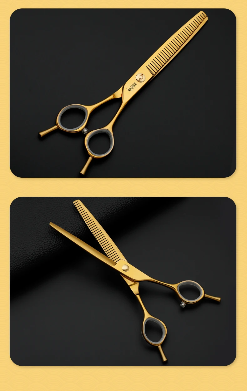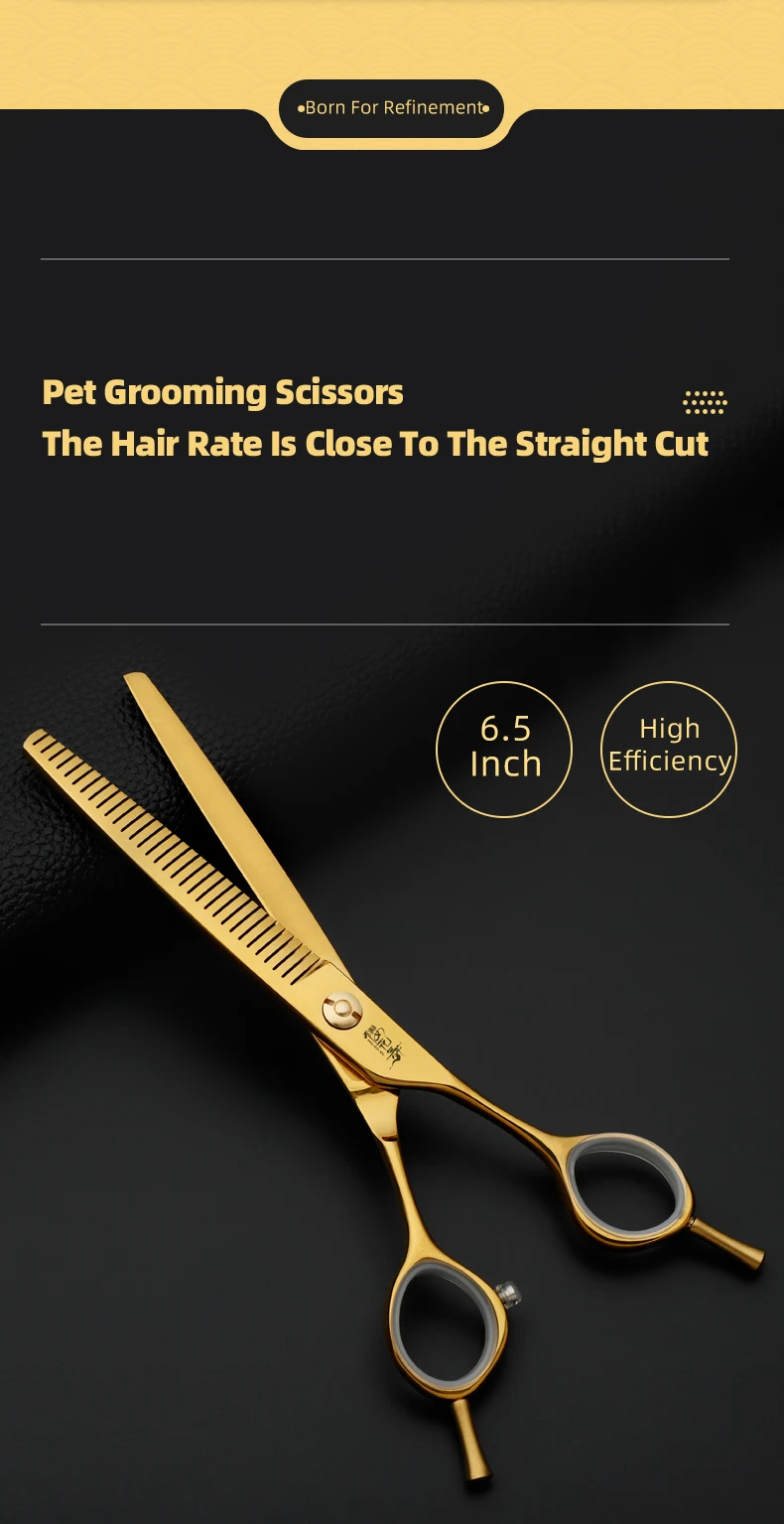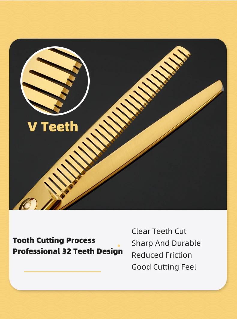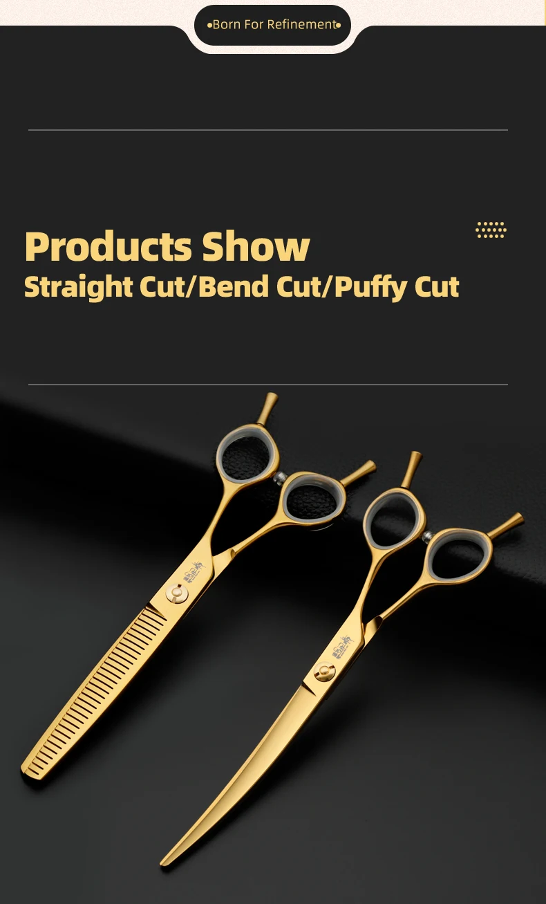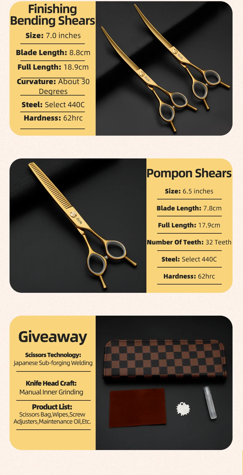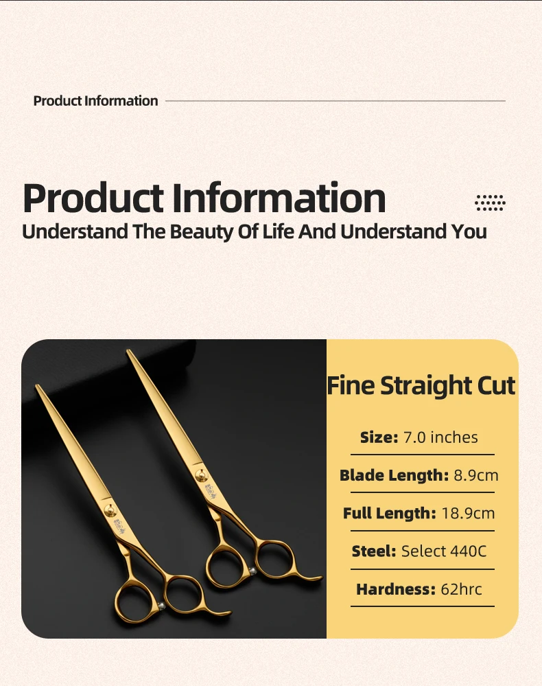 Juego de tijeras profesionales para el cuidado de mascotas, cortador de pelo curvo y liso de 7,0 pulgadas chapado al vacío en oro para el cuidado de la belleza