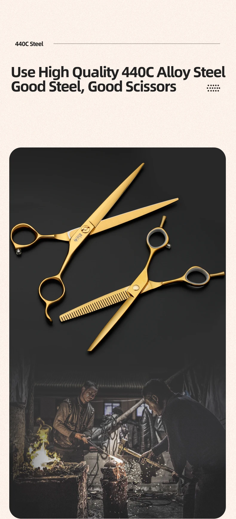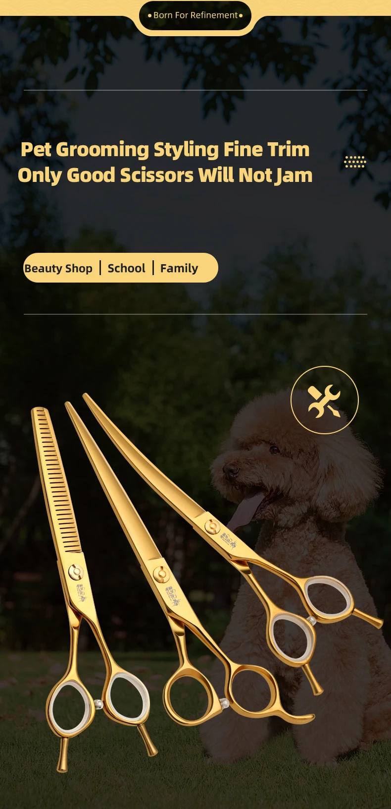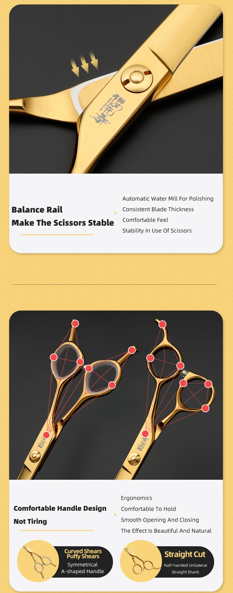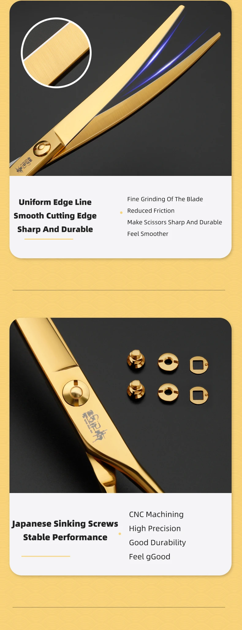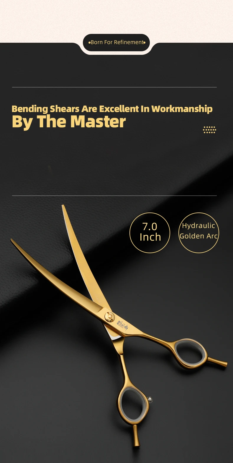 Juego de tijeras profesionales para el cuidado de mascotas, cortador de pelo curvo y liso de 7,0 pulgadas chapado al vacío en oro para el cuidado de la belleza