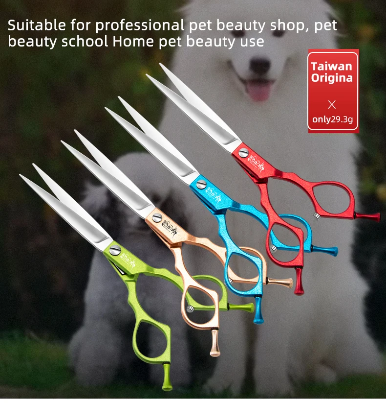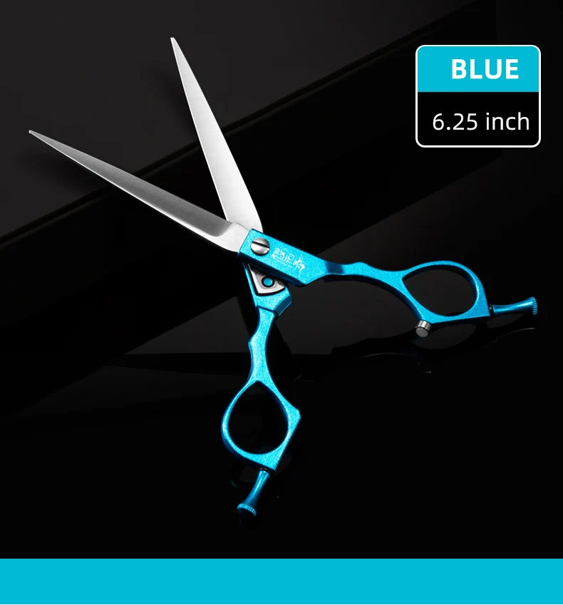 Juego de tijeras profesionales para el cuidado de mascotas, origen de Taiwán, corte fino de esteticista dividido azul recto para el hogar, 6,25' y 6,75'