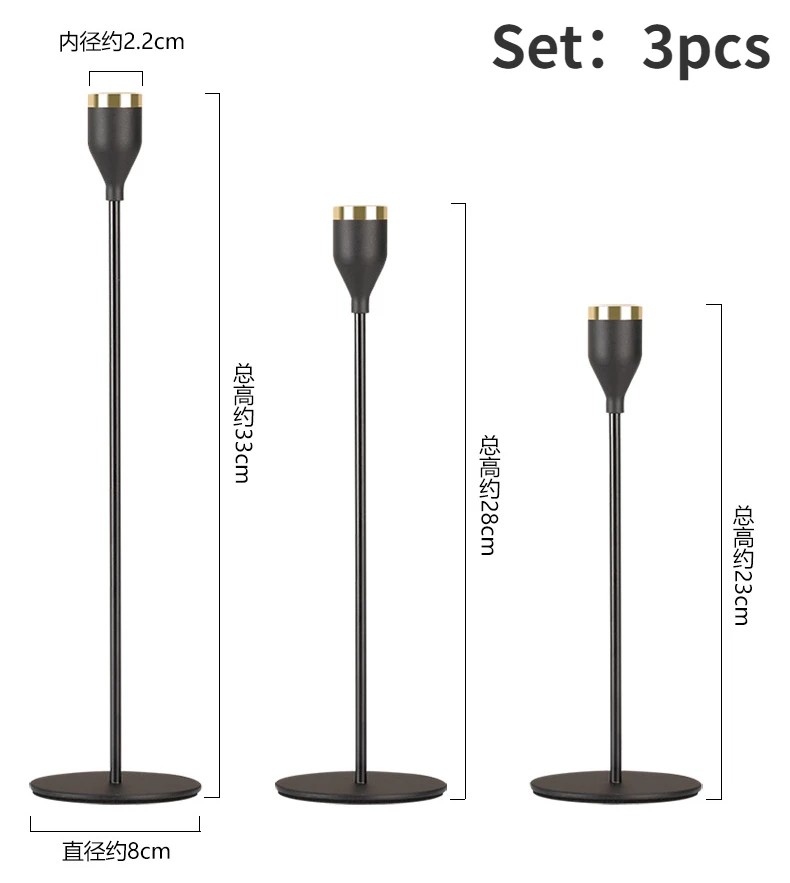 Juego de tres piezas de adorno de candelabro exquisito, mesa de banquete de boda, hogar de Navidad, cena romántica a la luz de las velas
