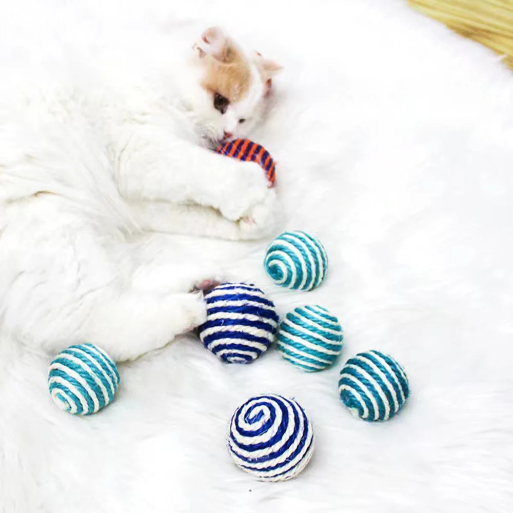 Juego de varitas de juguete y juguetes para gatos con bola de Sisal, autobuicio de aburrimiento para gatos, juguete para masticar duradero para la dentición, juguete de molienda antimordida