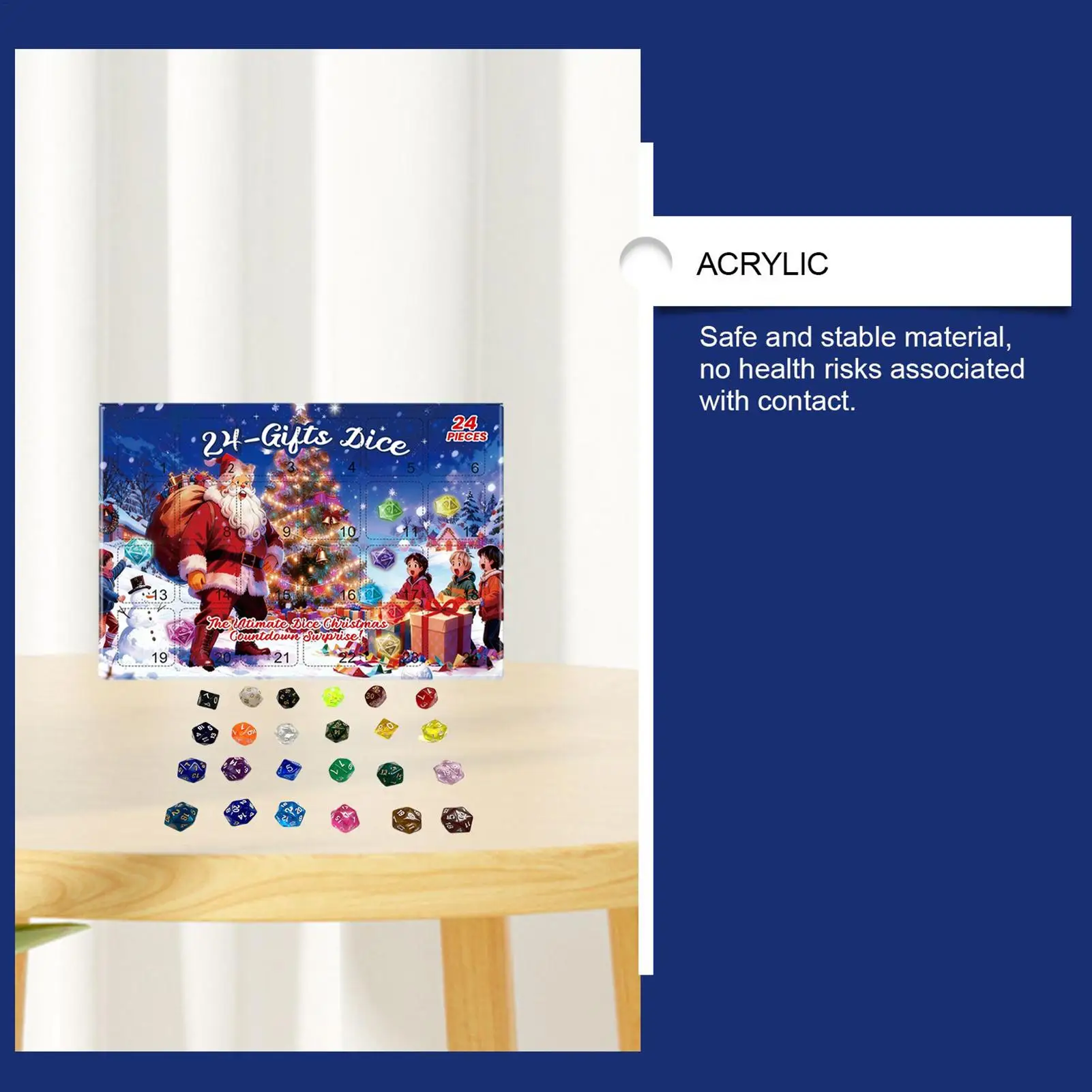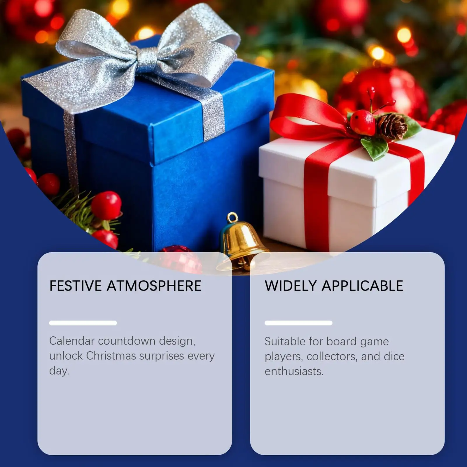 El calendario de cuenta regresiva para niños con juego de dados de 24 días es una adición atractiva y versátil a sus celebraciones navideñas.Diseñado como complemento de juegos de fiesta y accesorio de juegos de mesa, este conjunto brinda emoción a hombres, niños, niñas, jóvenes, adolescentes, esposas, esposos, hijas, familias y amigos por igual.Adecuado para crear momentos memorables durante reuniones festivas, fomenta la interacción y la diversión entre todos los grupos de edad.Ya sea que se utilice como cuenta regresiva para una ocasión especial o como integración en las noches de juego diarias, este juego de dados fomenta la conexión y el entretenimiento.Su adaptabilidad lo hace ideal para diversos entornos, desde veladas familiares hasta reuniones amigables.