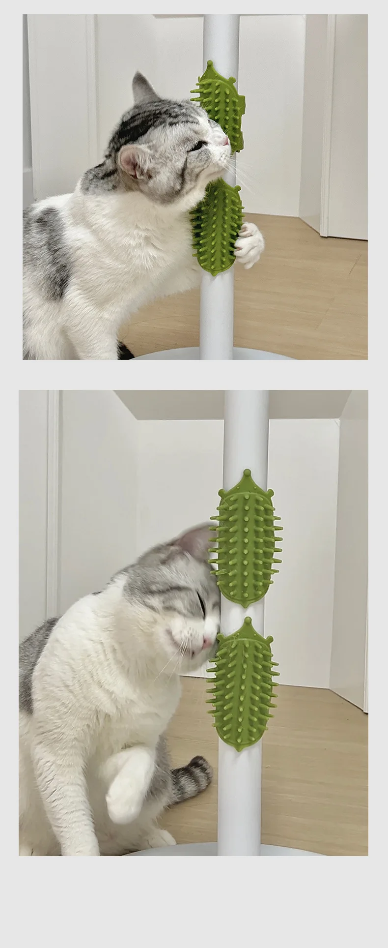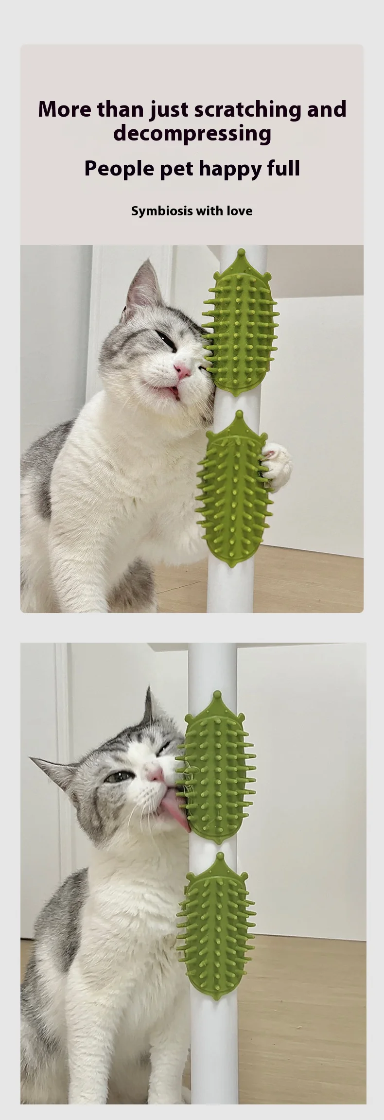 Juguete autoadhesivo 2 en 1 para gatos, rascador de silicona con correa para muebles, masaje y depilación, alivio del estrés para gatos aburridos