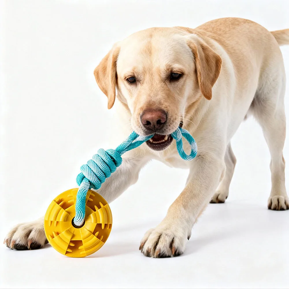 Juguete de bola de cuerda para masticar para perros, juguete de nudo interactivo resistente a mordeduras, juguete duradero para limpieza Dental para mascotas