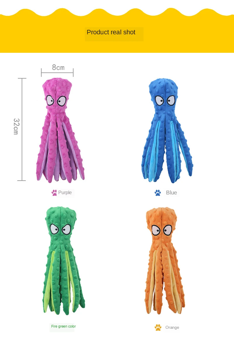 Juguete de calamar para perro, pulpo, peluche BB, cuerda para cachorro, rosa, azul, amarillo, verde, juguetes chirriantes para masticar