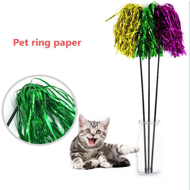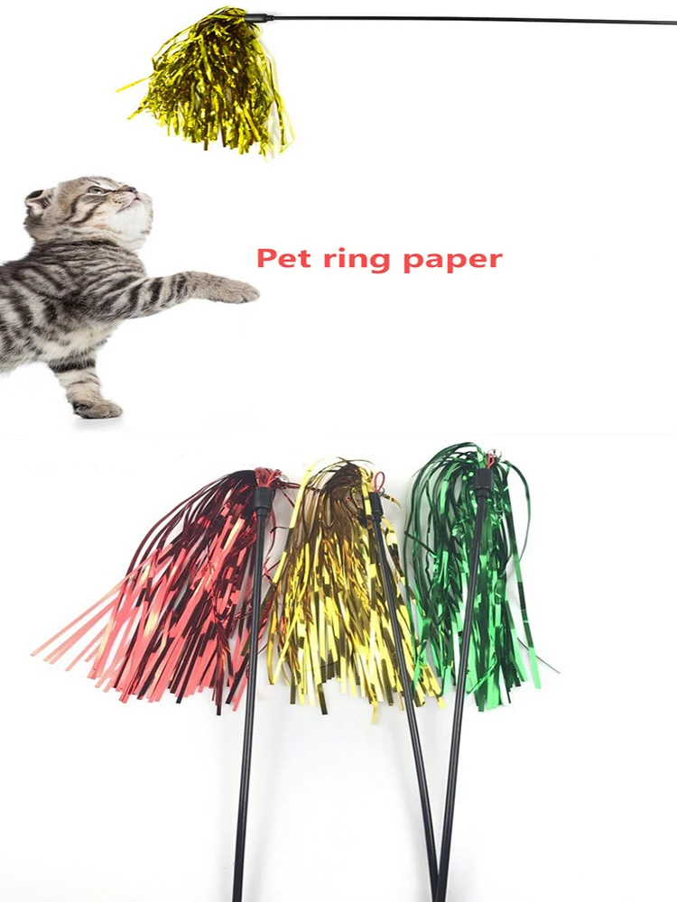 Juguete de campana para gato, anillo de borla hecho a mano, palo de color de papel, suministros para mascotas, nuevo
