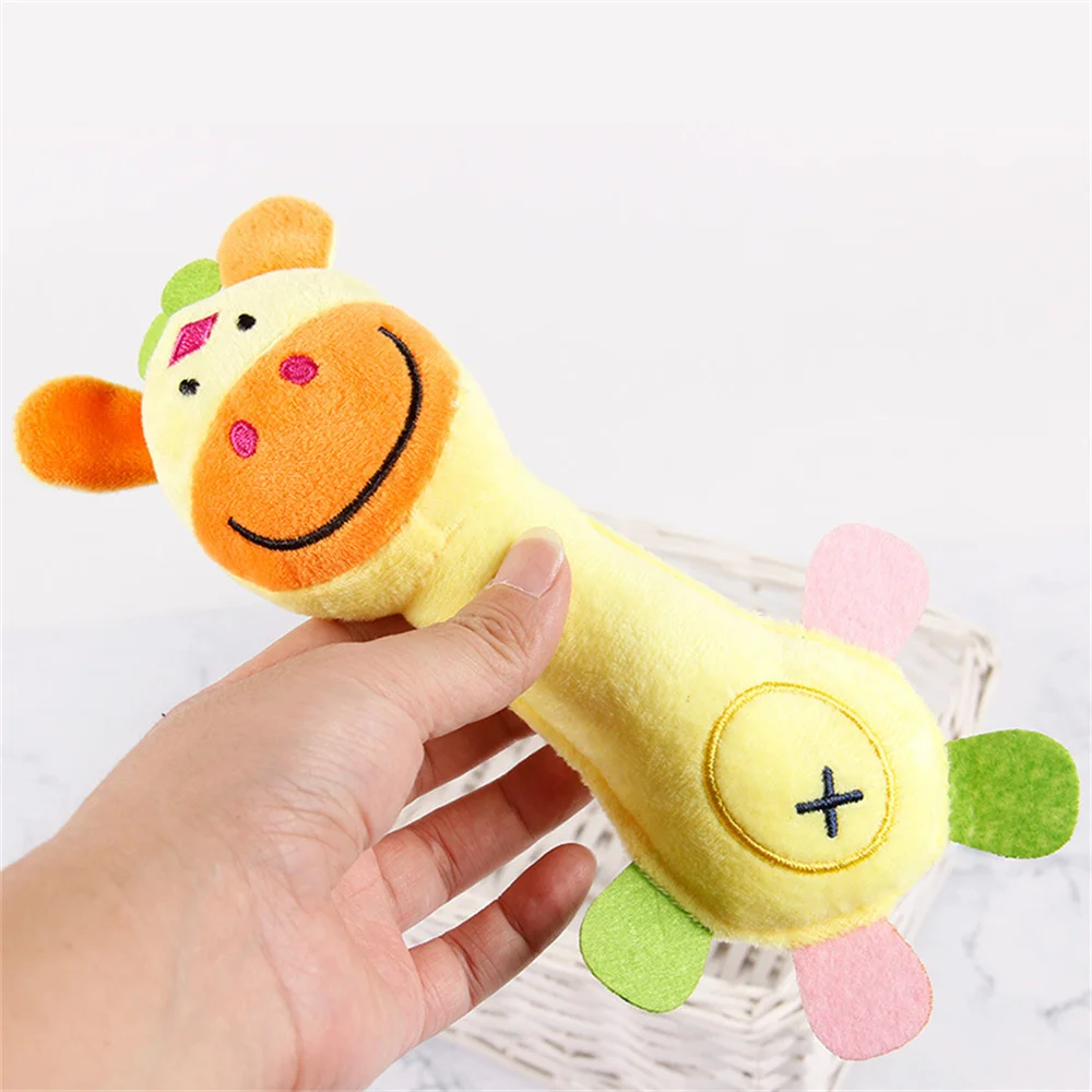 Este juguete de peluche para cachorros chirriantes para perros está diseñado para limpiar los dientes de su mascota mientras juega, promoviendo la salud bucal.