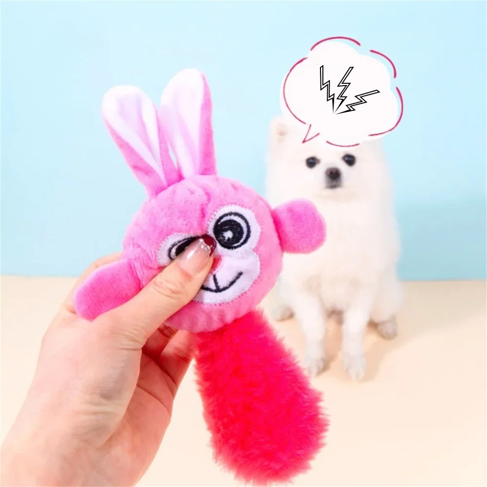 Este juguete de peluche para cachorros chirriantes para perros está diseñado para limpiar los dientes de su mascota mientras juega, promoviendo la salud bucal.