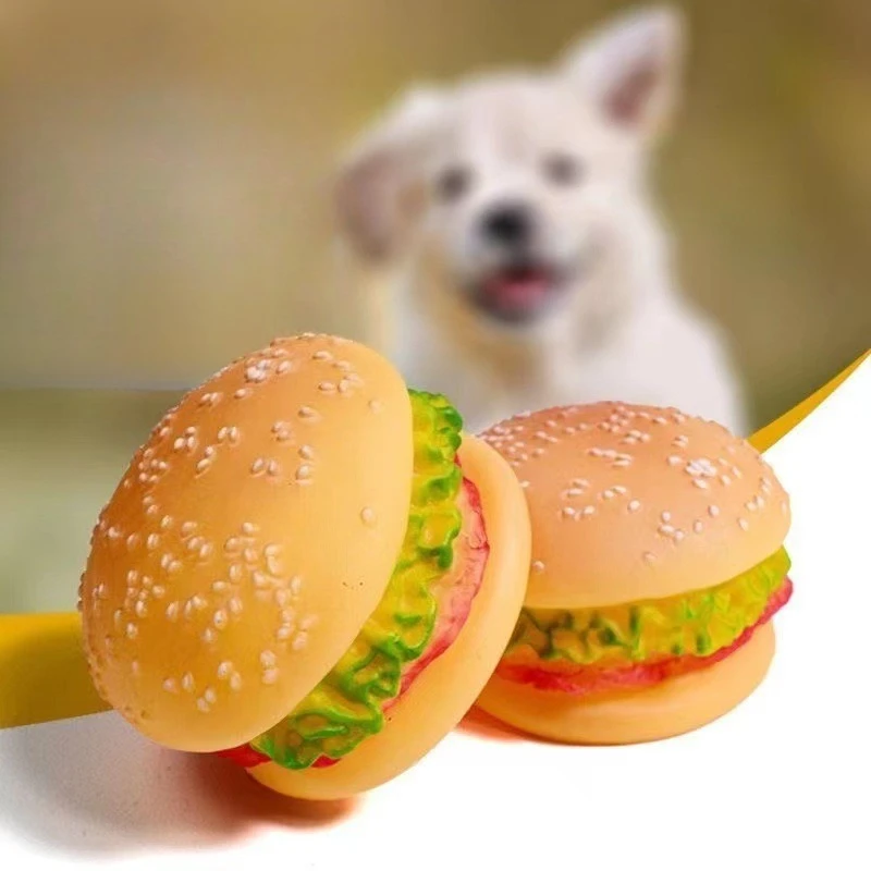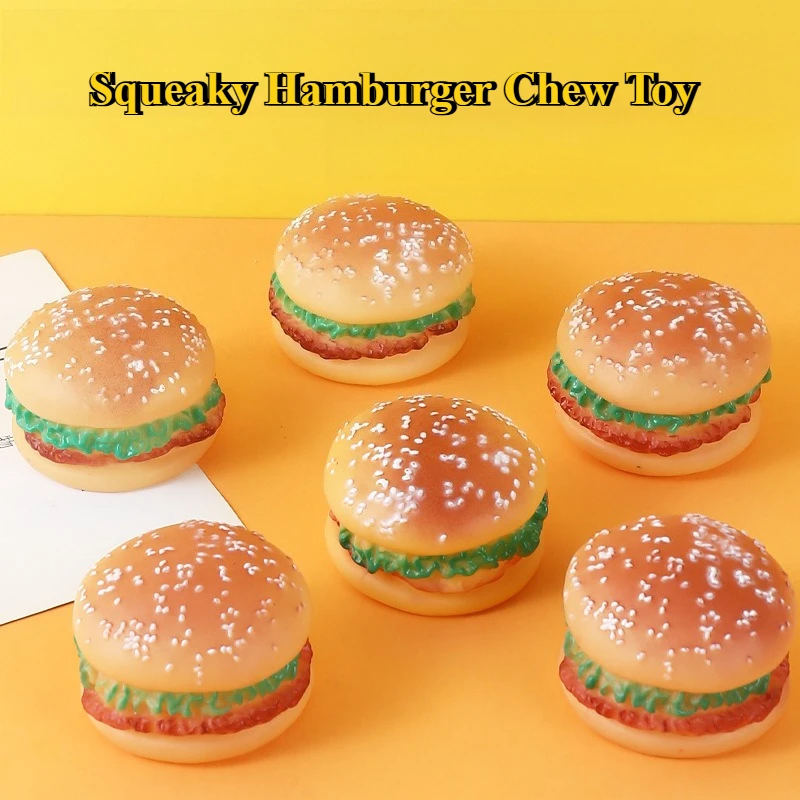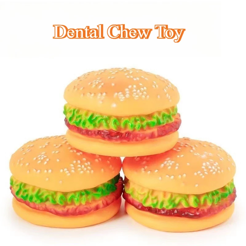 Juguete chirriante para perros con hamburguesa, juguete para masticar para limpieza de dientes y cuidado molar, juguetes interactivos para morder mascotas para perros