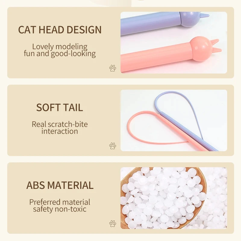 1. Material de alta calidad: el palo teaser de cola es un juguete especialmente diseñado para provocar a los gatos, está hecho de material de silicona, que es suave y duradero.Inspirado en la curiosidad y el interés de los gatos en sus colas, la forma y el color de este teaser son similares a la cola de un gato, lo que atrae la atención del gato y los hace incapaz de resistirse a perseguir y jugar con él.