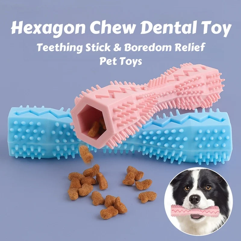 Juguete dental hexagonal para masticar, palo de dentición texturizado multisuperficie, diseño de rompecabezas para aburrimiento, juguetes interactivos para perros y gatos