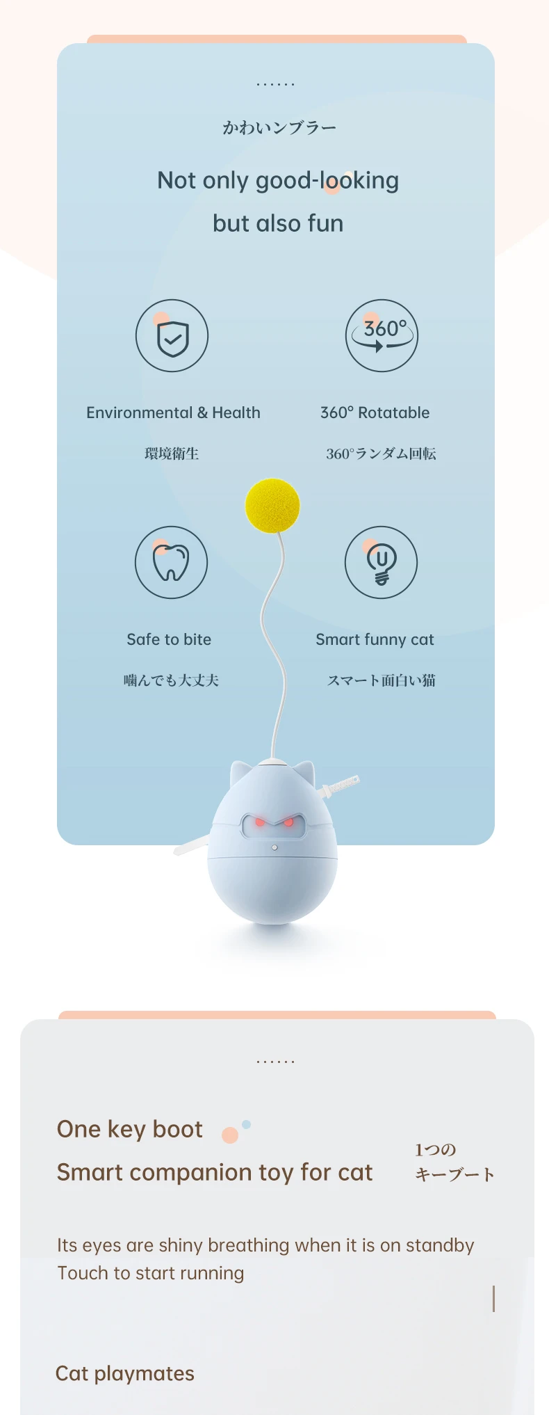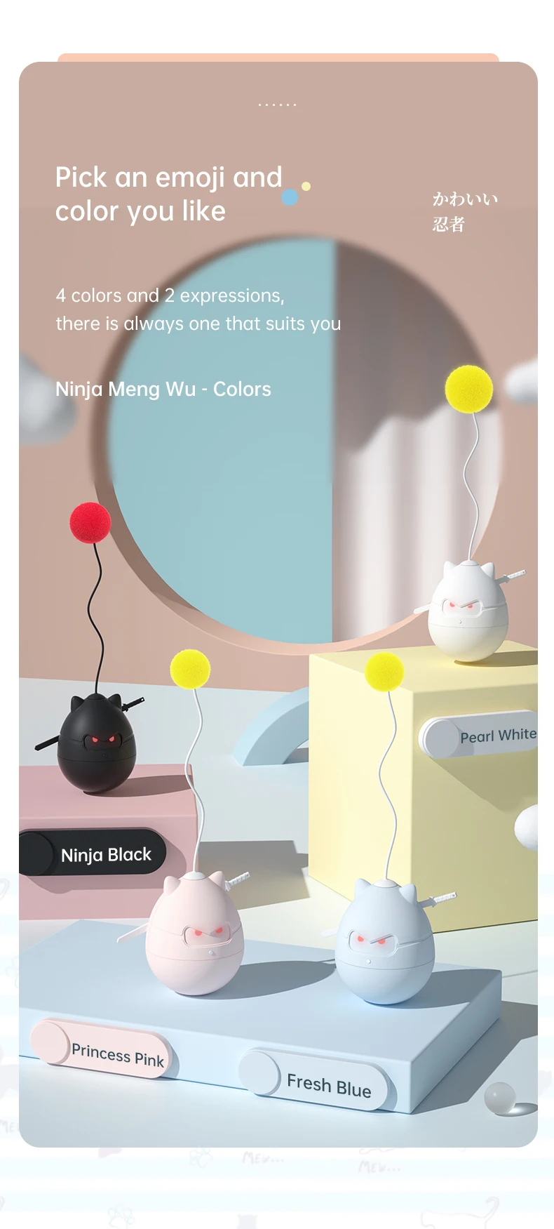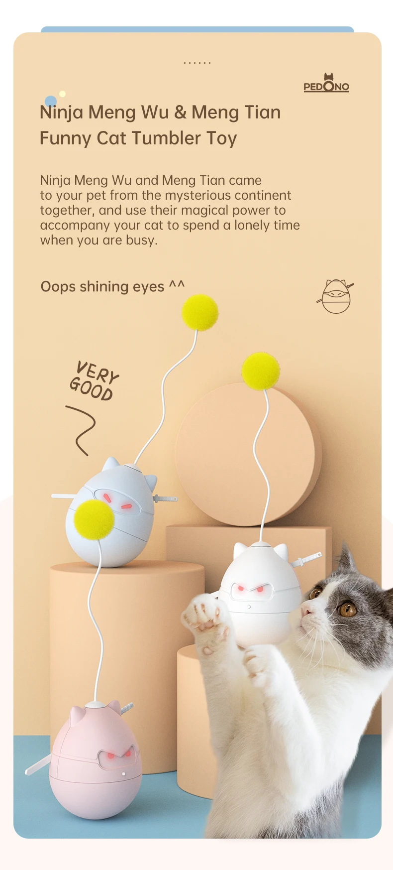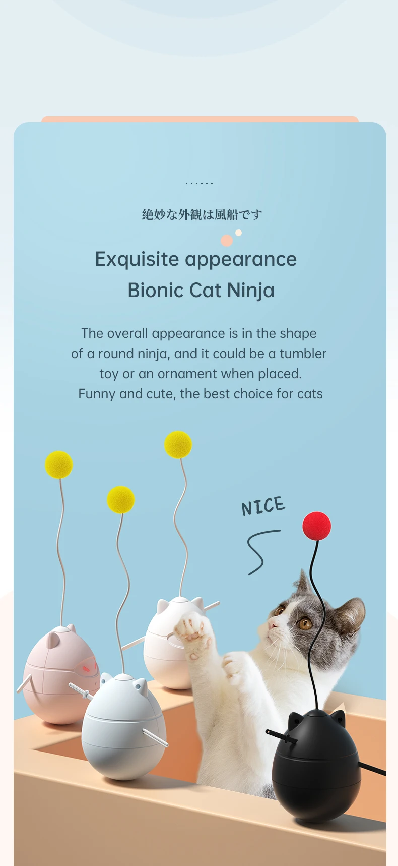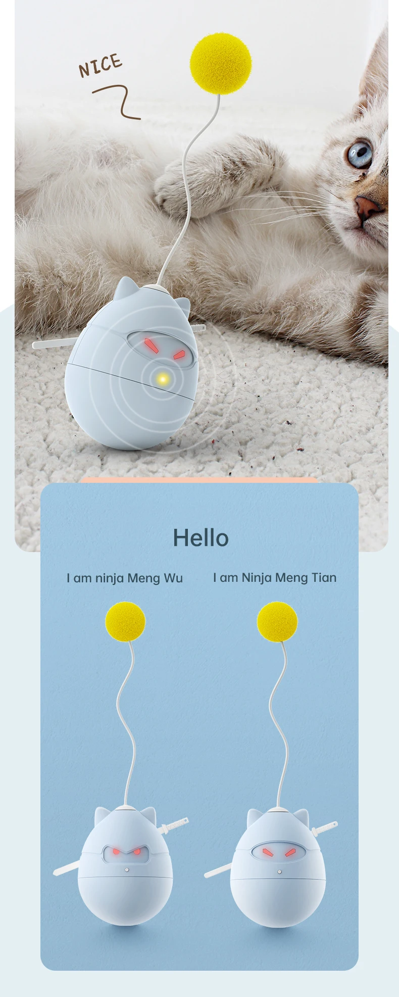 1. Auto-Rodante: el modelo Ninja tiene función de vaso incorporada, que puede motivar a los gatos a saltar y jugar para brindar diversión a sus gatos. Puede ayudar eficazmente a su bebé a hacer ejercicio. Y el funcionamiento silencioso no afectará a sus vecinos.