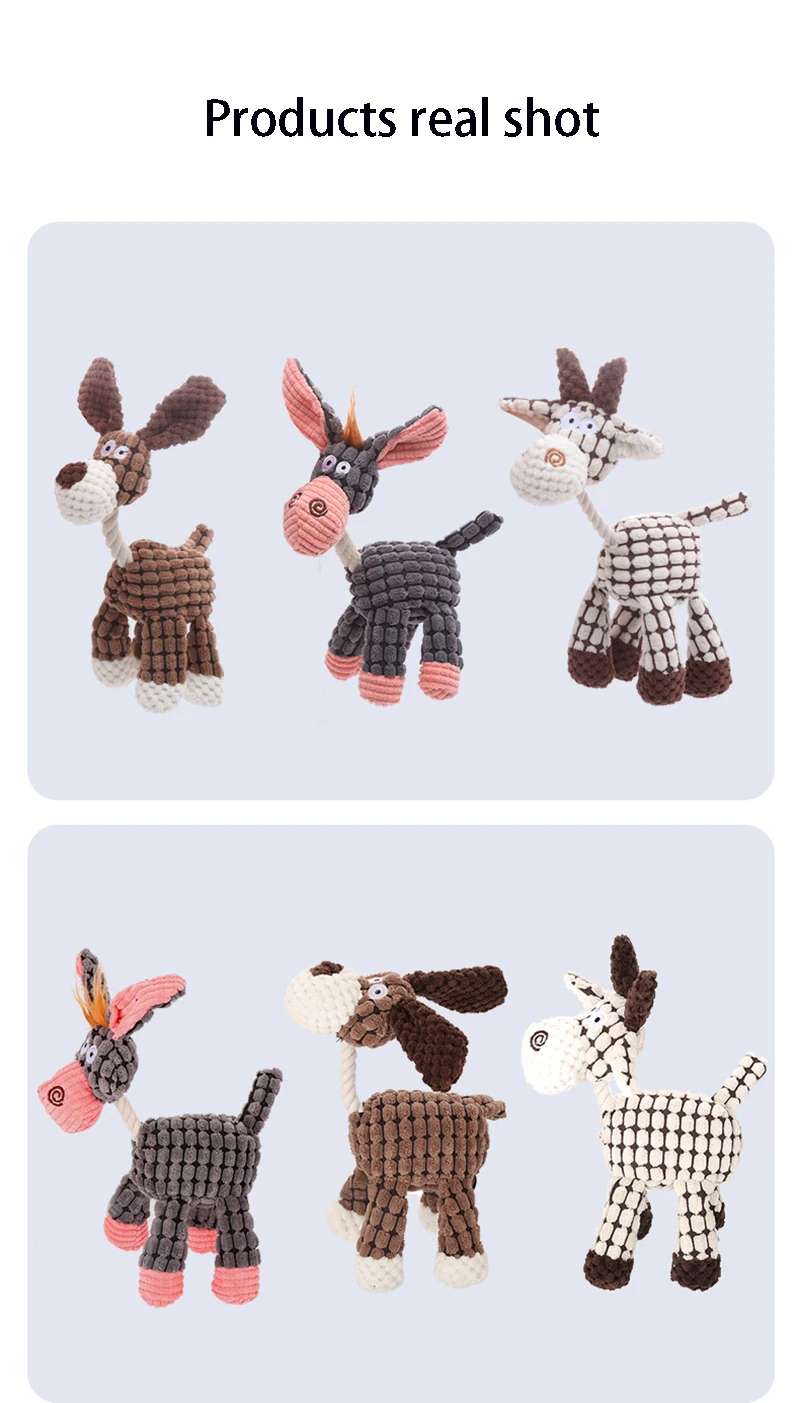 Juguete divertido para mascotas con forma de burro, juguete para masticar de pana para perros, cachorro, chirriante, hueso de peluche, accesorios medianos para perros, sonido de felpa de entrenamiento
