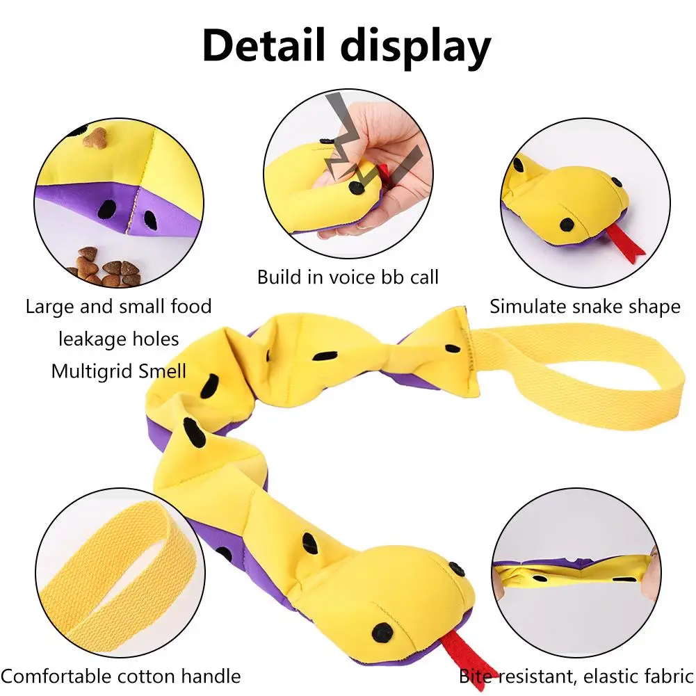 1. [Alta calidad]: El bonito diseño con forma de serpiente y la función de sonido de la cabeza pueden atraer la atención de su perro apretando el sonido. El cómodo mango del cinturón de algodón le permite sostener el mango sin ninguna molestia, y también ayuda en sus interacciones con las mascotas.