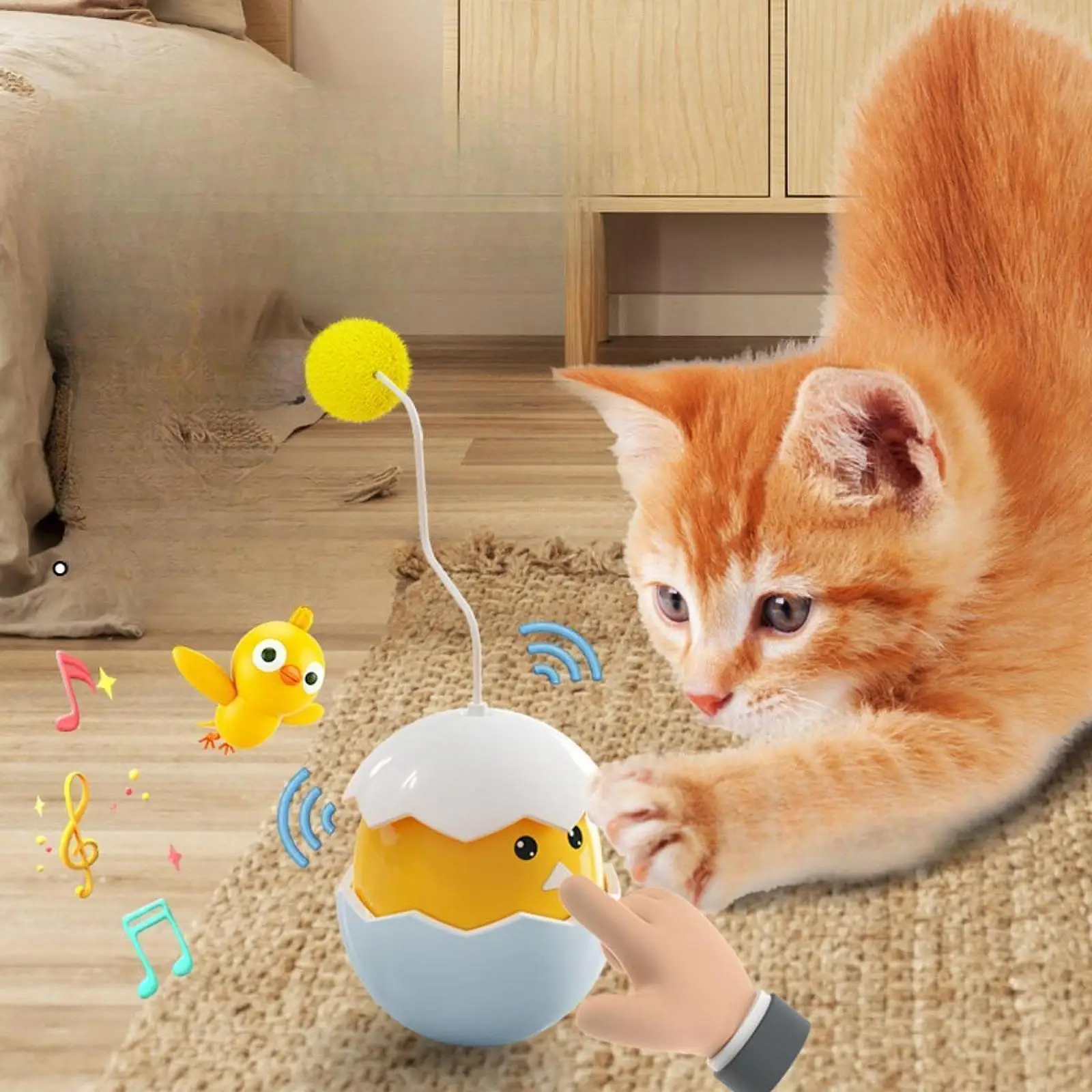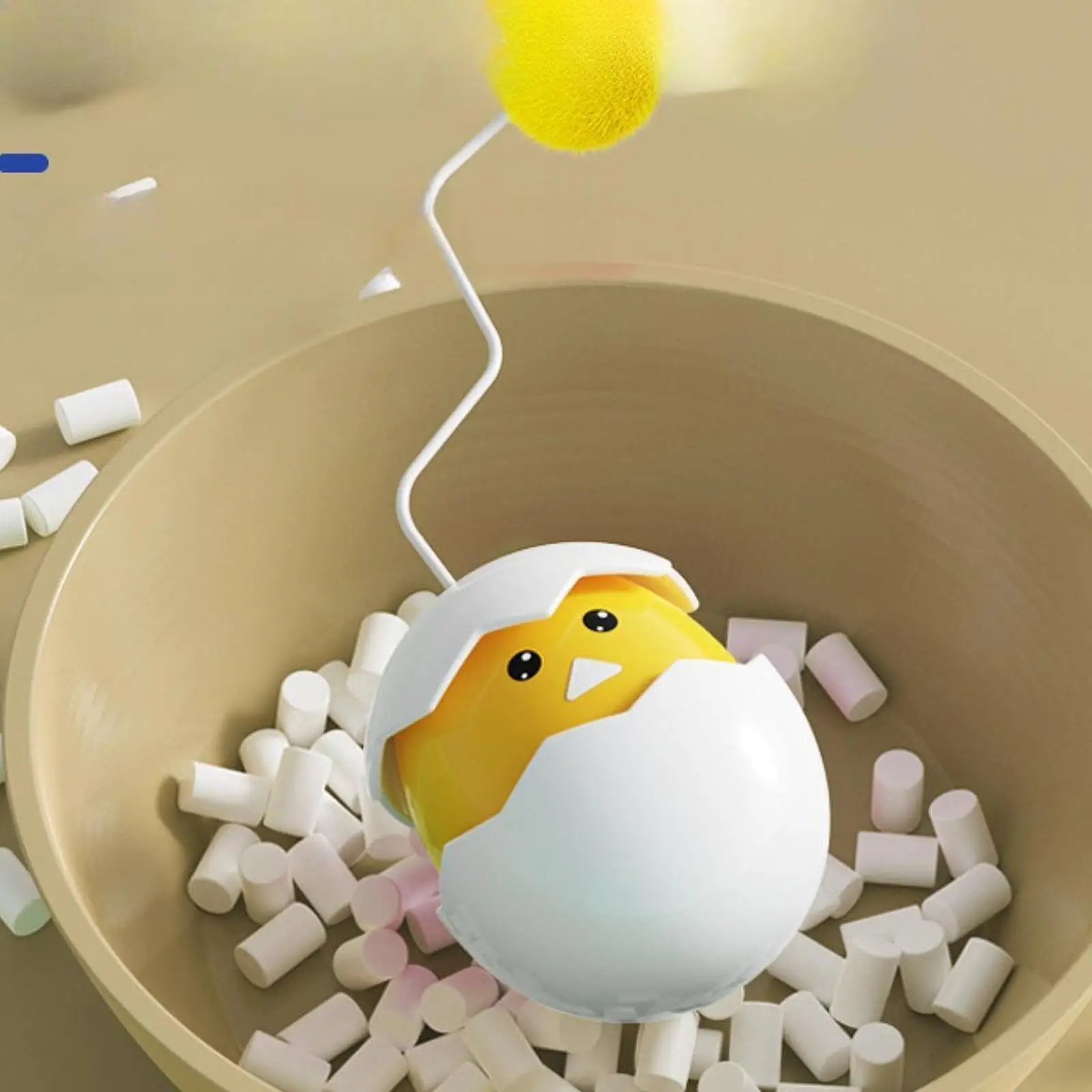 【Diseño interactivo en forma de huevo】: este juguete presenta un diseño único en forma de huevo que imita el juguete clásico. El movimiento de tambaleo y los sonidos simulados de pollito seguramente cautivarán la atención de su mascota.