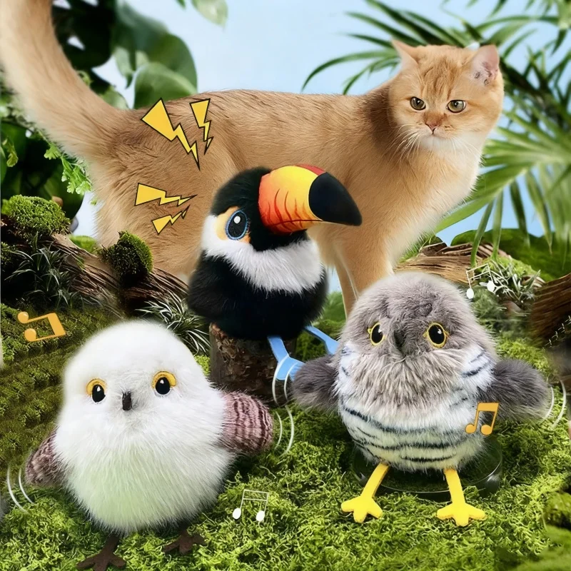 Introducing the cat toys with Induction Movement, designed to keep your feline friend entertained and engaged. This interactive toy features realistic birds sounds, vibrating motion, and a claw activation function that mimics the thrill of hunting. The dynamic and lifelike design captures your cat's attention, providing a stimulating play experience.