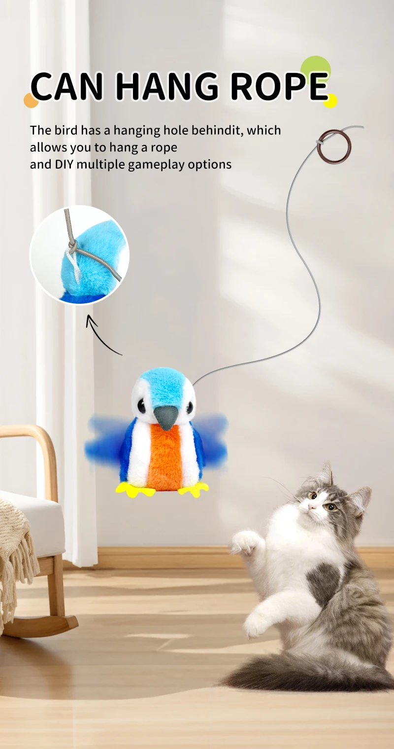 Juguete eléctrico inteligente para gatos, pájaro de peluche con alas para chirrido y sacudir, juguete para gatos con cuerda colgante, juguetes interactivos para gatos