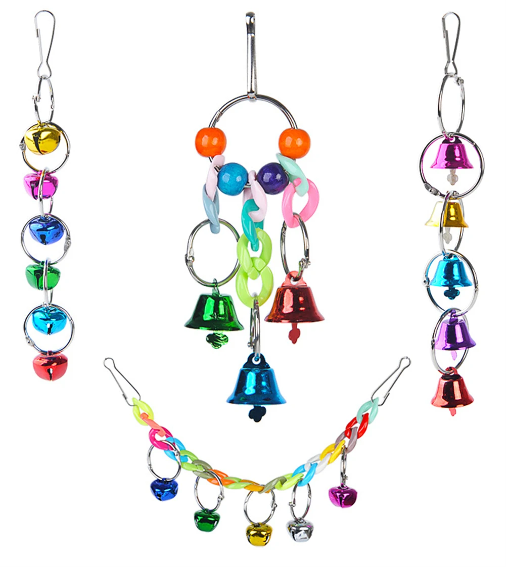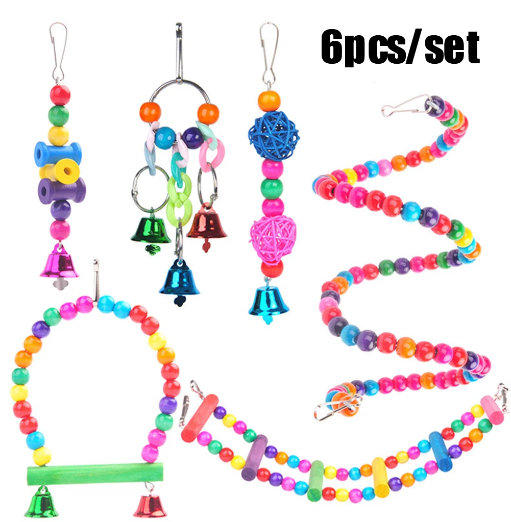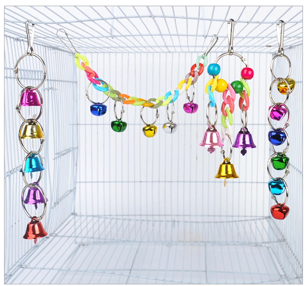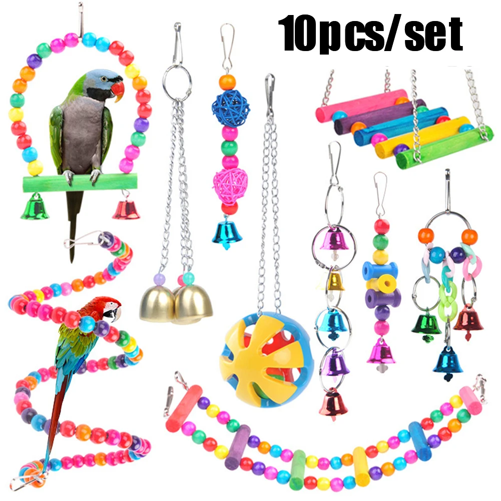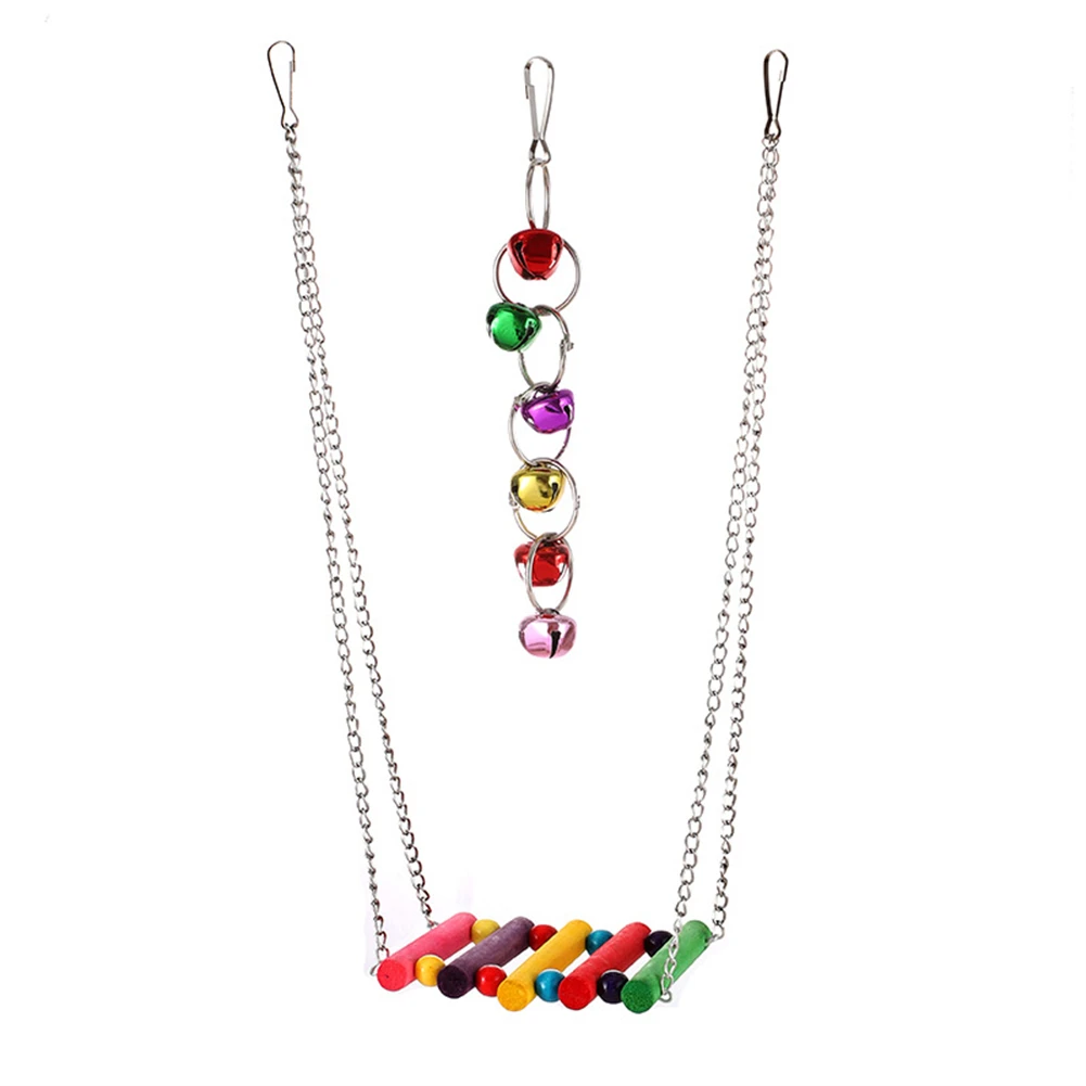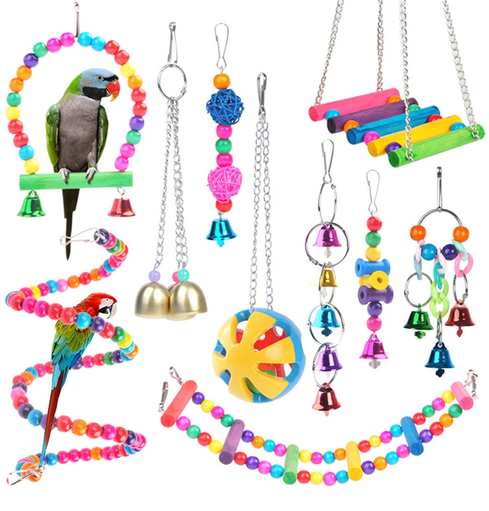 Juguete de entrenamiento de masticación para periquitos, juego de juguetes de combinación para pájaros, jaula para loros, campanas, perca, escalera, juguete para loros pequeños, columpio colgante, hamaca