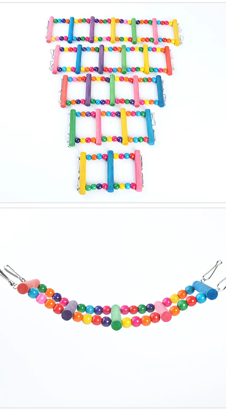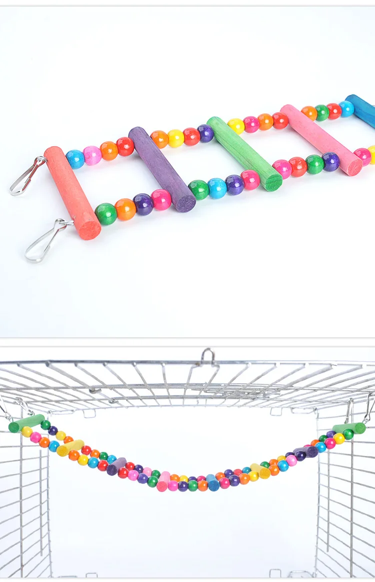 Juguete de escalera de escalada para loros, puente de entrenamiento de suspensión para pájaros, Bola de ejercicio de Color, juguete Molar de madera, suministros para periquito