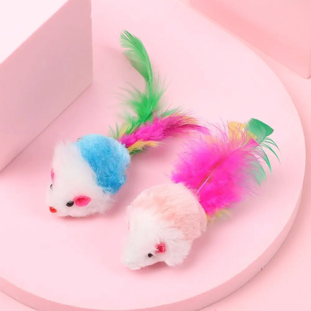 Juguete de felpa para gato, minicamión de felpa suave con plumas de colores, suministro para mascotas, 5/10/15 piezas
