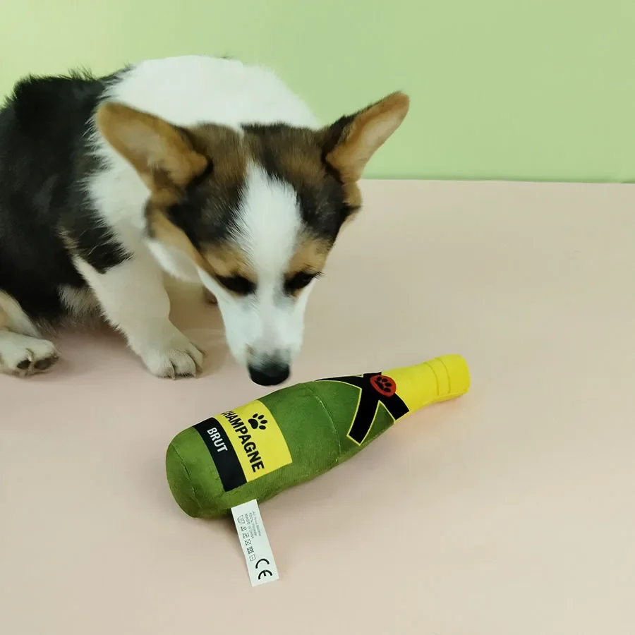 Juguete de felpa interesante para perro, botella de vino con forma de perro pequeño y grande, limpieza de dientes, masticar, juguete interactivo para mascotas, suministros