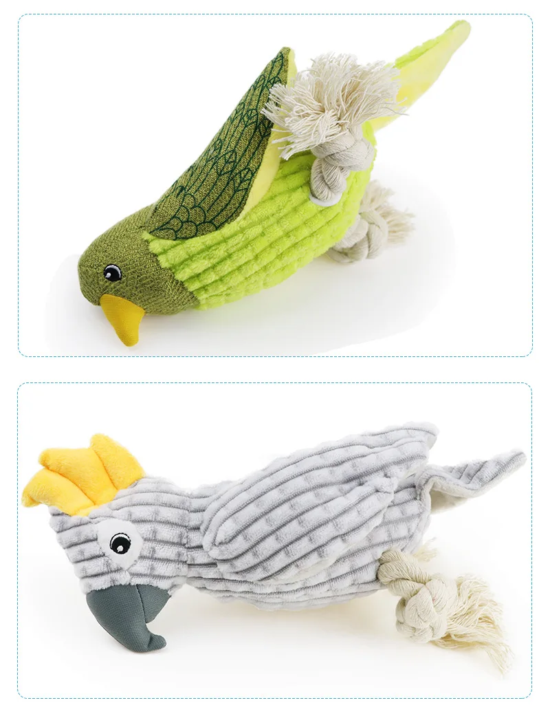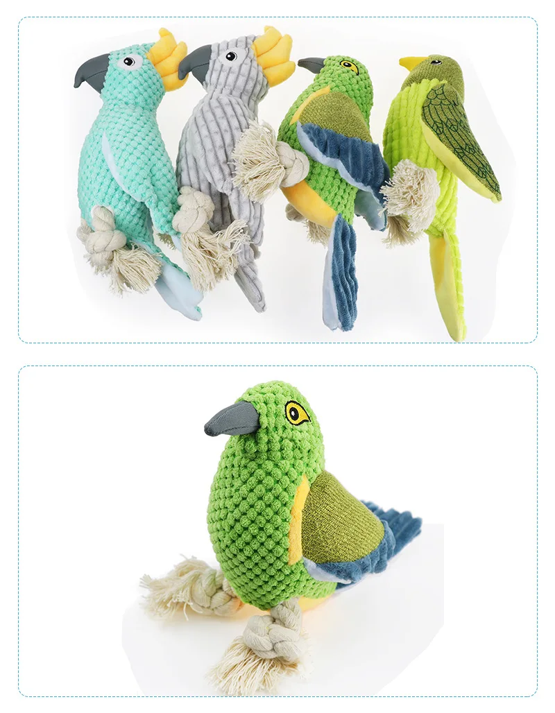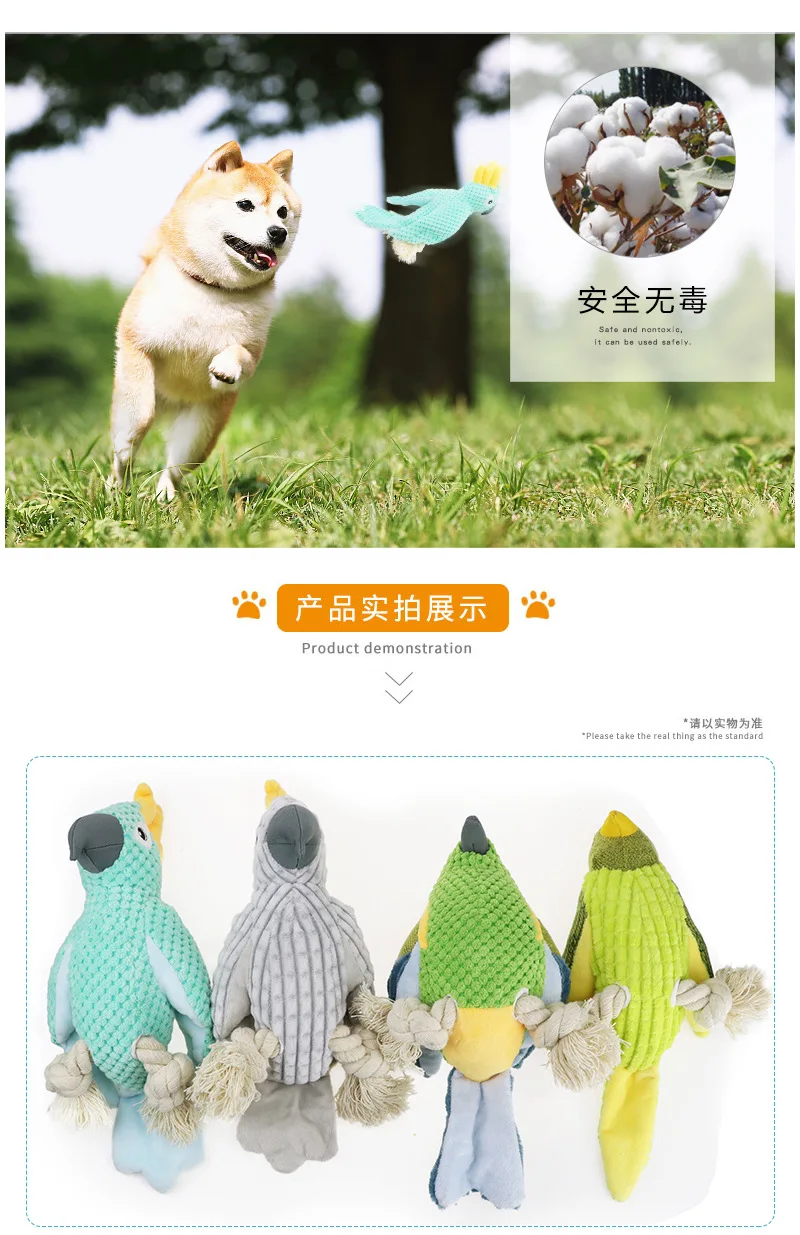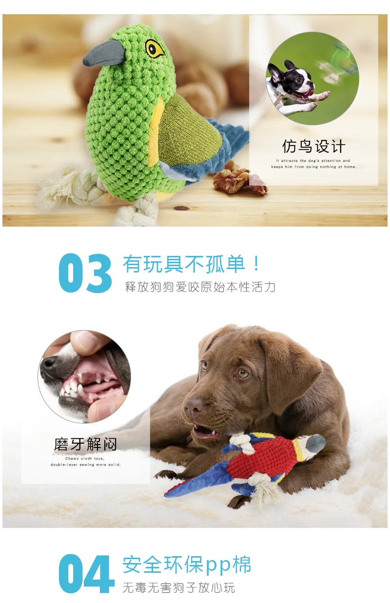 Juguete de felpa para mascotas, juguete resistente a las mordeduras, con sonido de pájaro y loro, suministros para mascotas