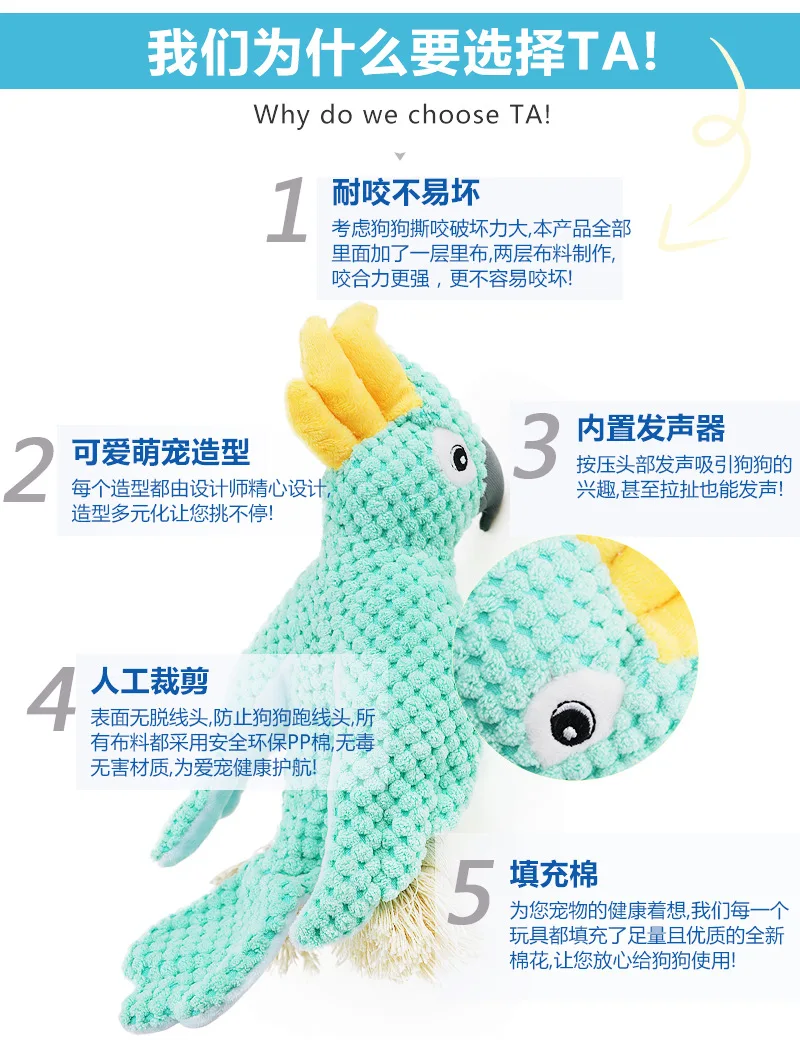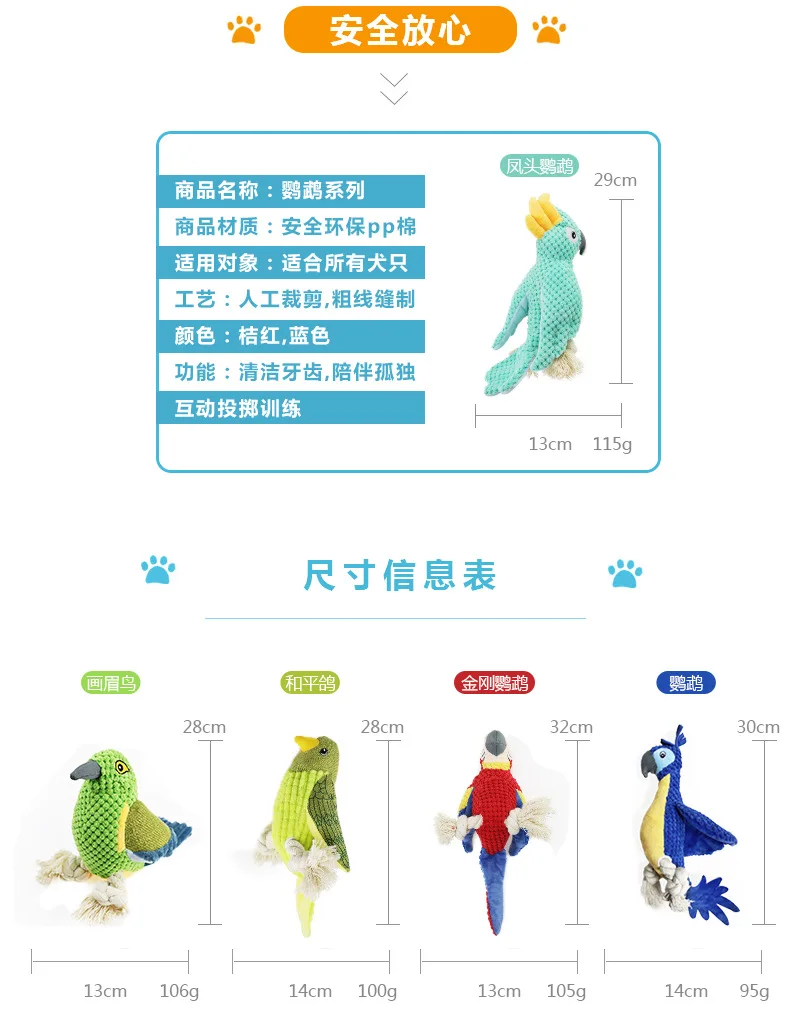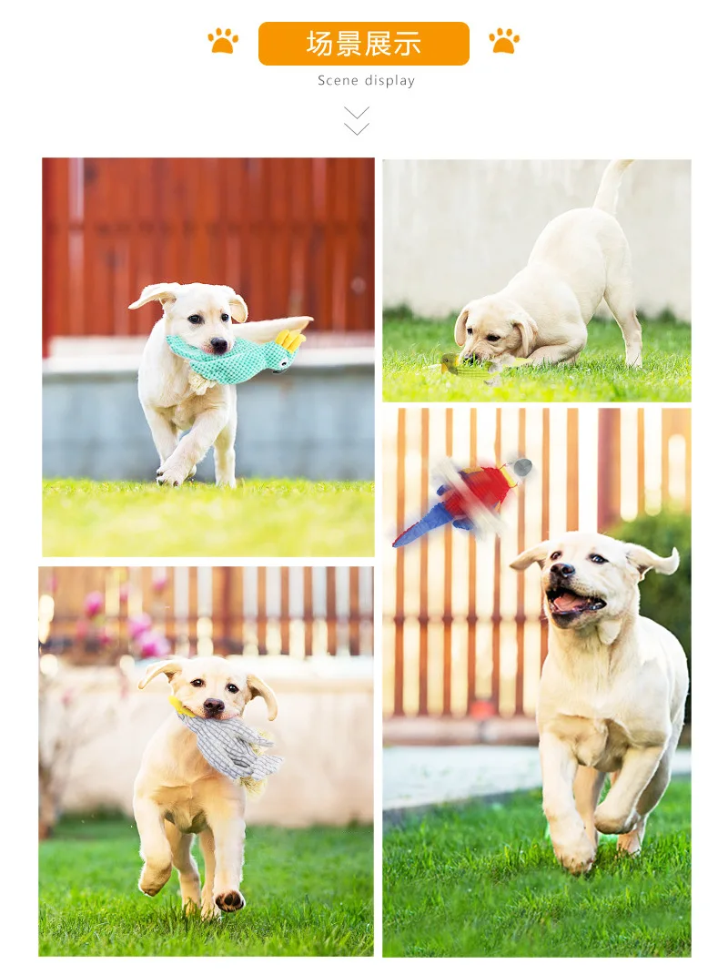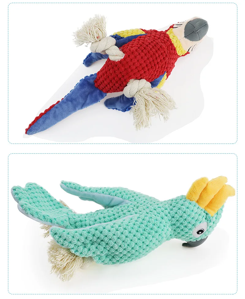 Juguete de felpa para mascotas, juguete resistente a las mordeduras, con sonido de pájaro y loro, suministros para mascotas