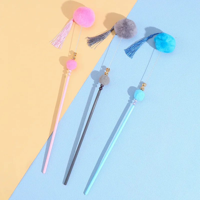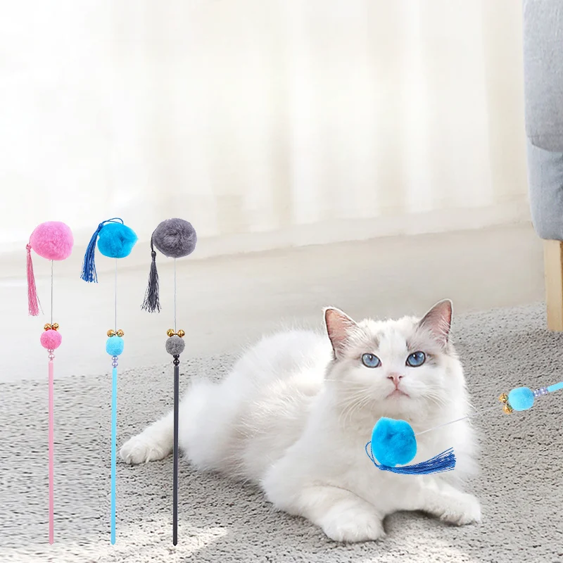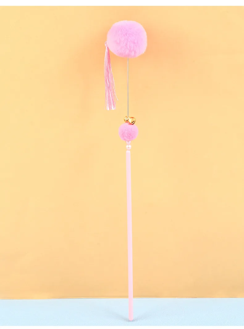 Juguete para gato con borla de hada para niña, Bola de piel, palo Teaser, productos para mascotas, nuevo