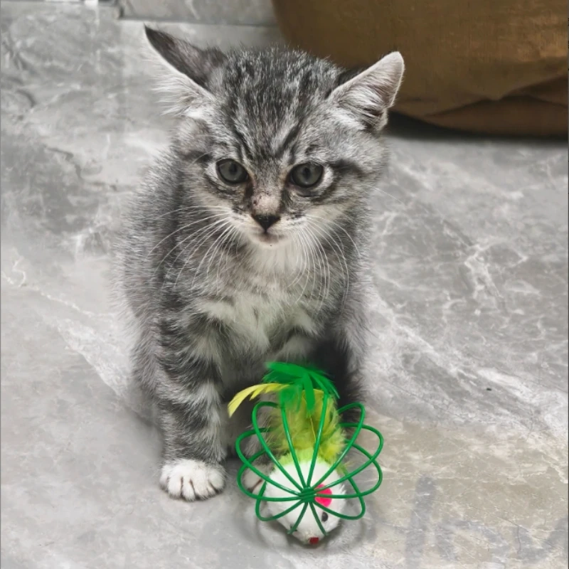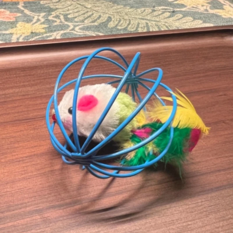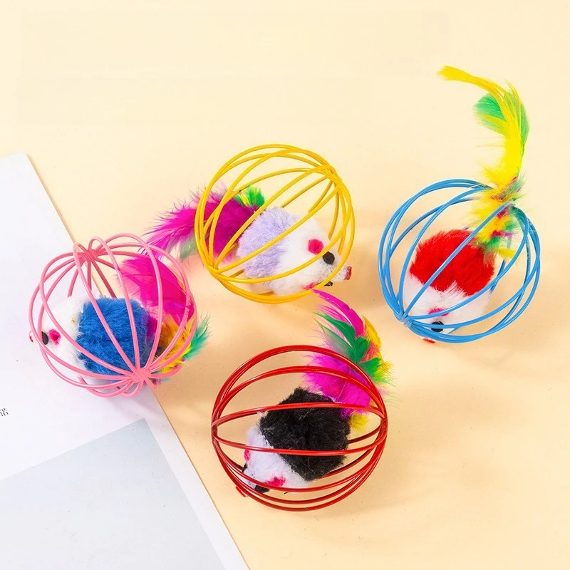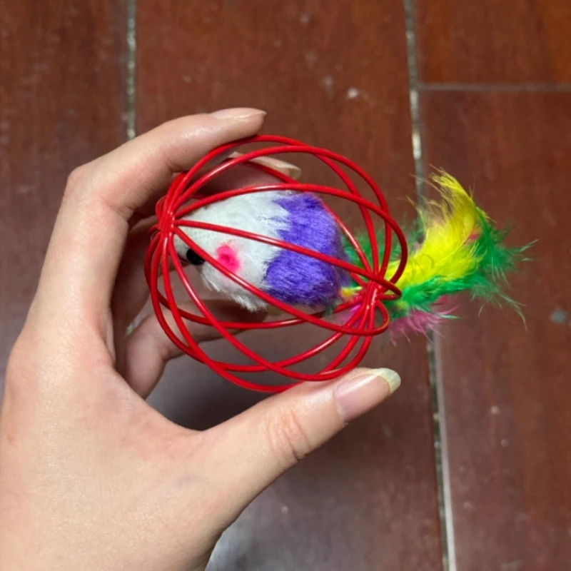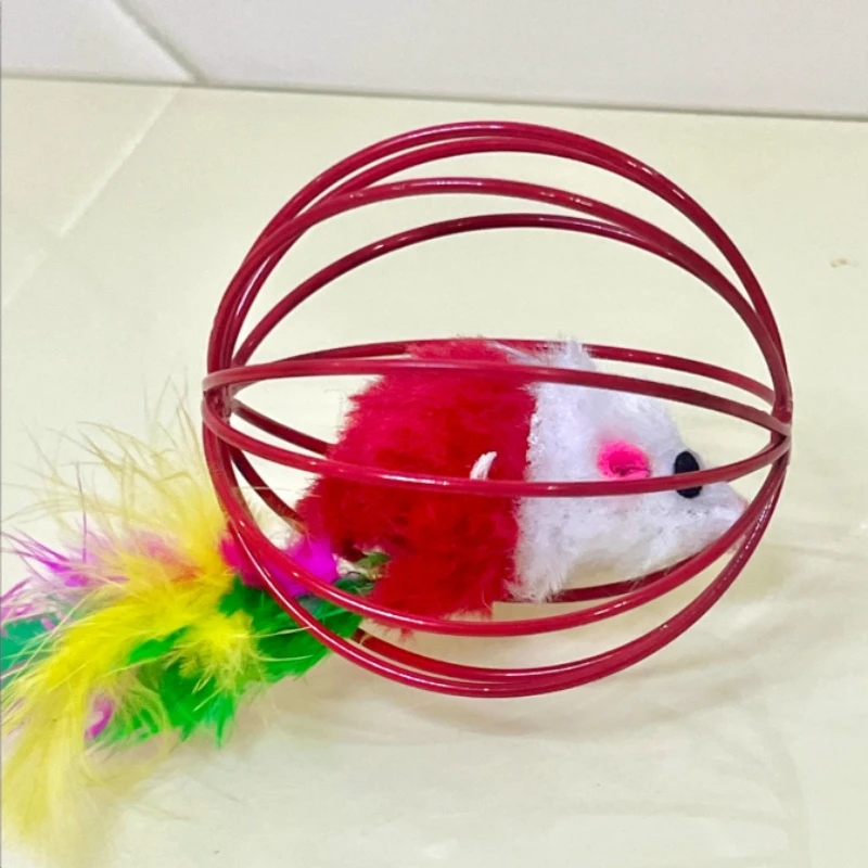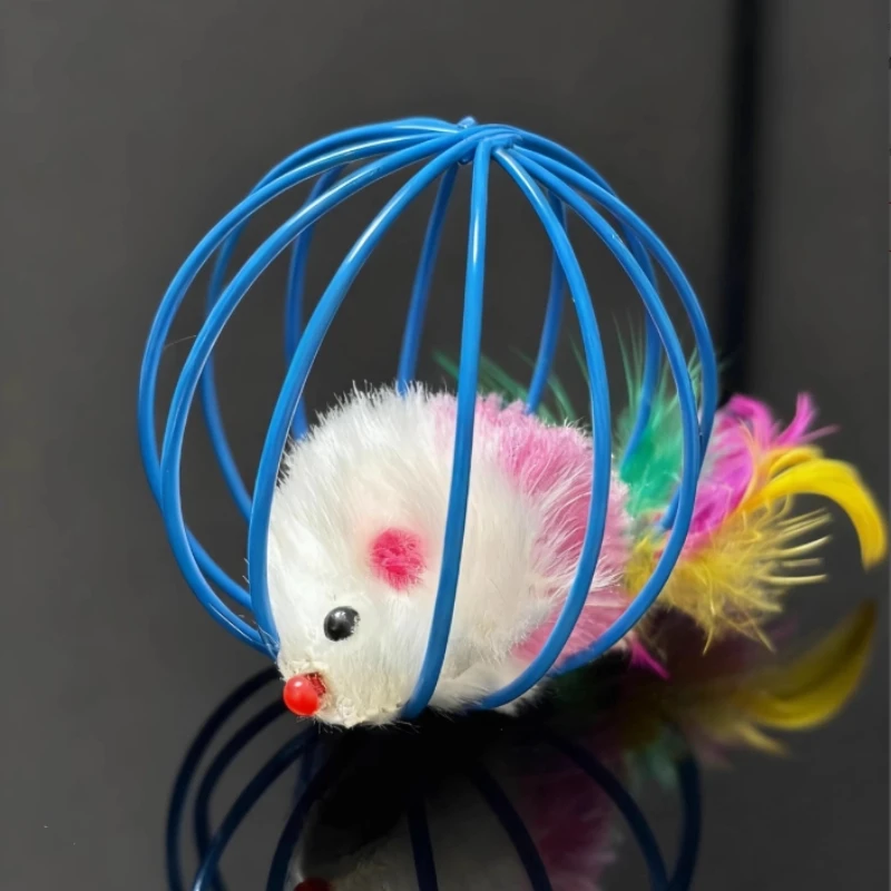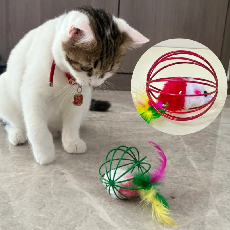 Juguete para gato con forma de jaula y ratón con cola de plumas, juguete interactivo colorido para perseguir, juguete con bola rodante, 1 pieza de accesorios para gatos de Color aleatorio