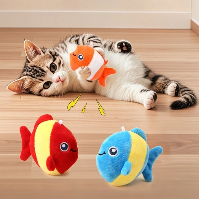 Juguete para Gato, simulación interactiva, campana de pez de peluche, juguete para gatito hablado, mordedura para masticar, juguete para gato, accesorios para mascotas