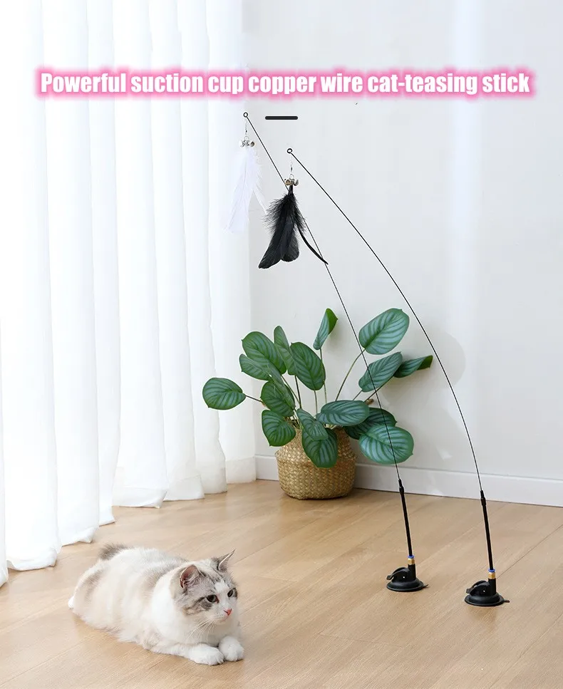 Juguete para gatos, Varita para gatos, pluma esponjosa con ventosa de campana, palo para gatos, juguetes interactivos para gatos, gatitos, caza, ejercicio, producto para mascotas