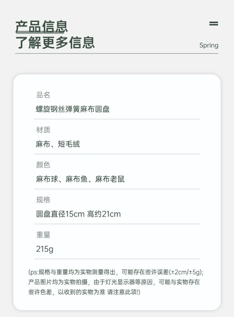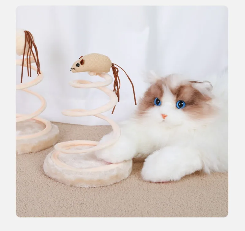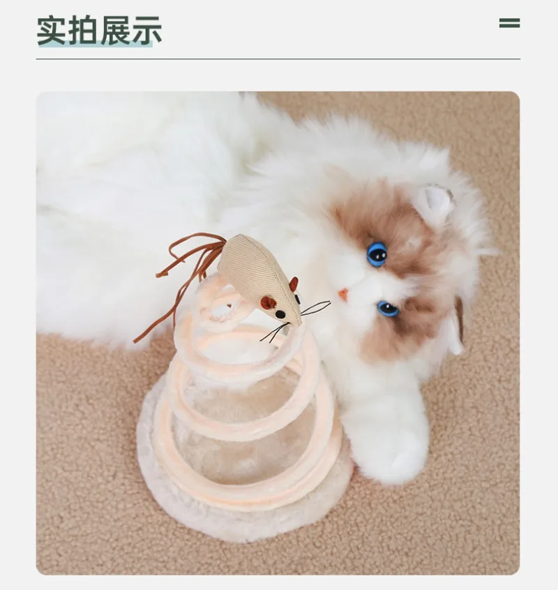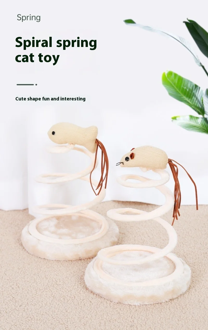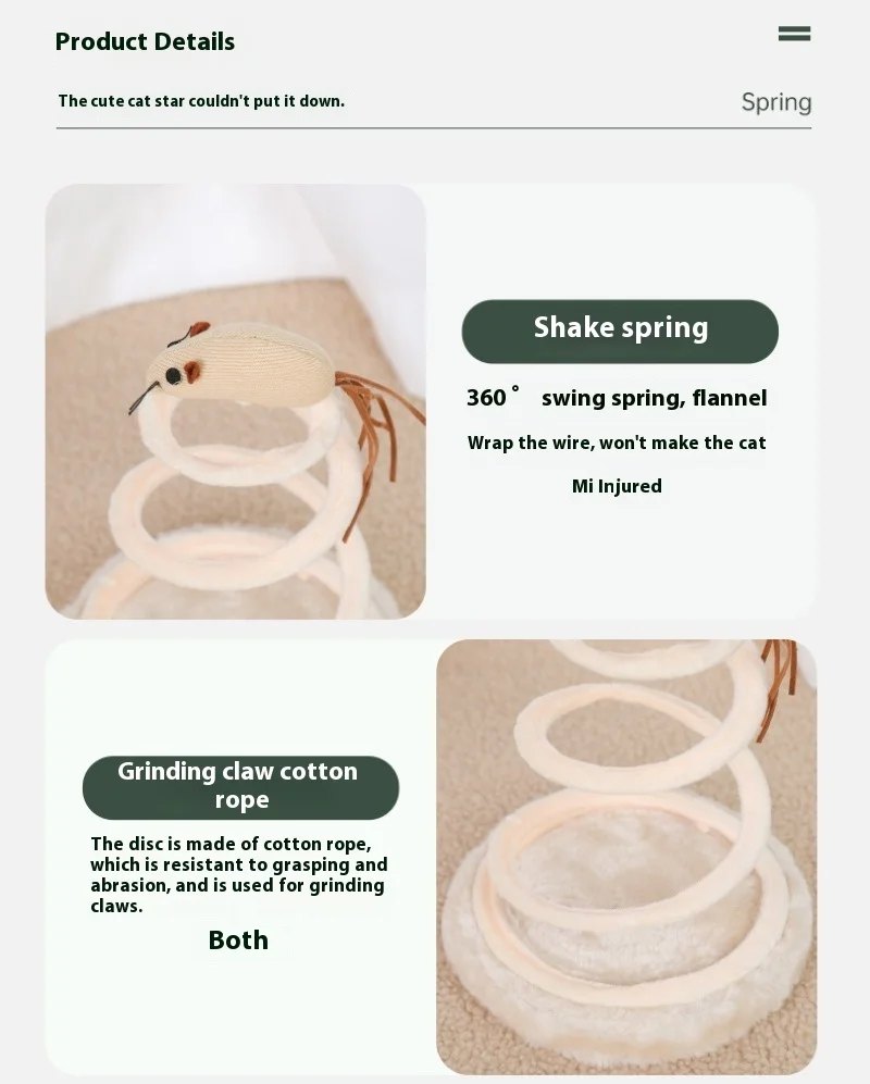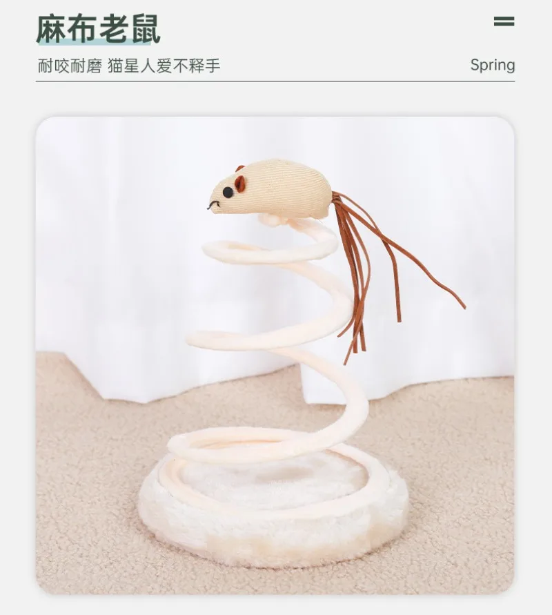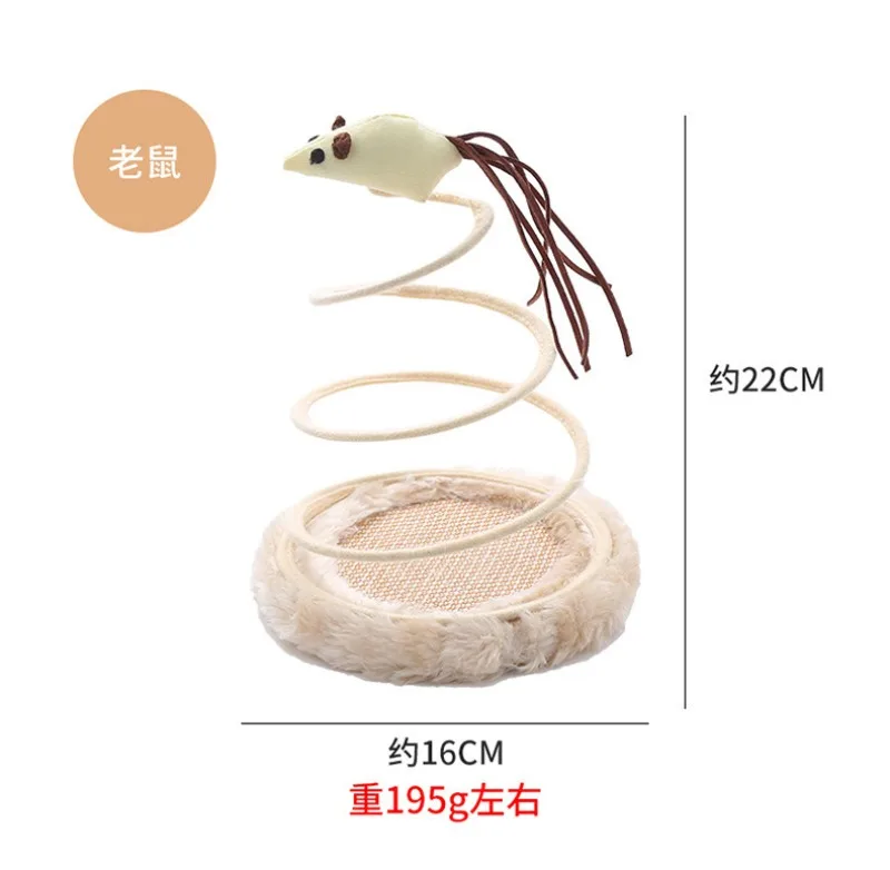 Descripción: Juguete para gatos, alambre en espiral, disco de lino de primavera, tabla rascadora para gatos, ratón de linoCaracterísticas: Paso 1 Agitar el resorte 360°,包丝, 2.棉 内为棉, 3.Felpa corta Paquete corto de felpa, suave y cómodo, no dañará al gato.