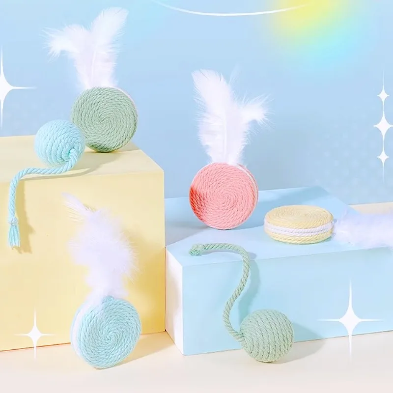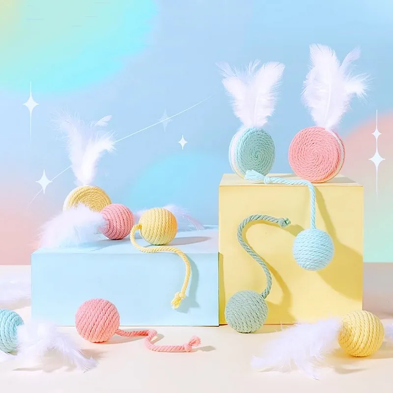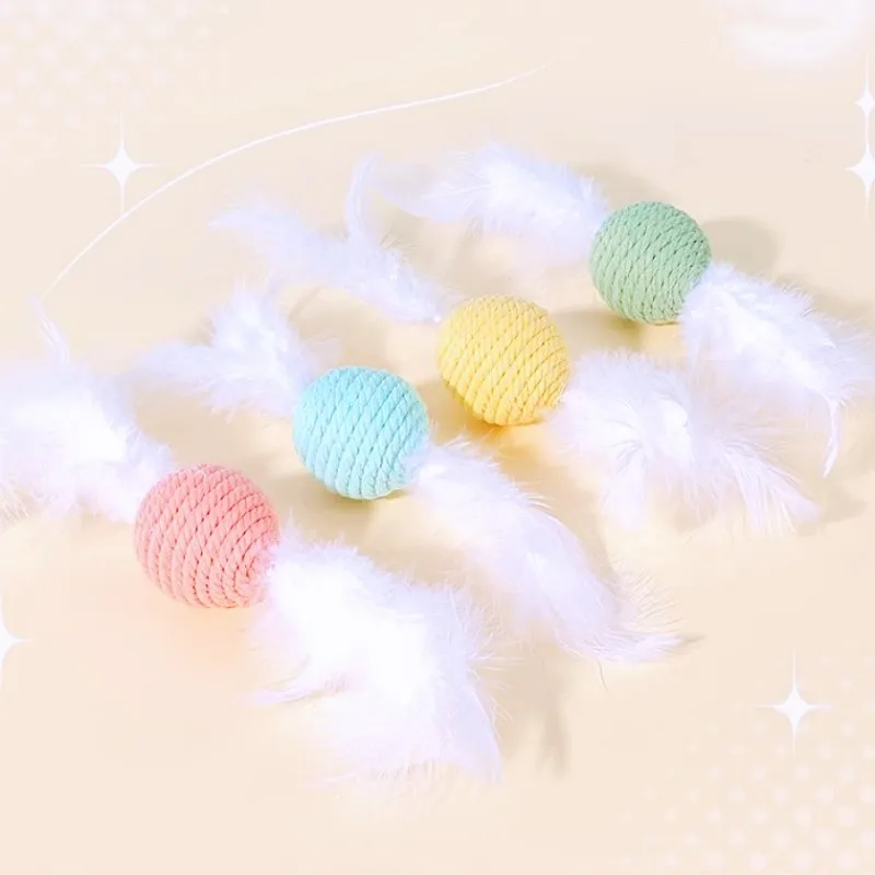 Juguete para gatos, Bola de plumas, juguete interactivo para gatos, cuerdas, pelota para gatos, Teaser, cuerdas de algodón autohi, juguetes para gatos, molienda de dientes, suministros para mascotas