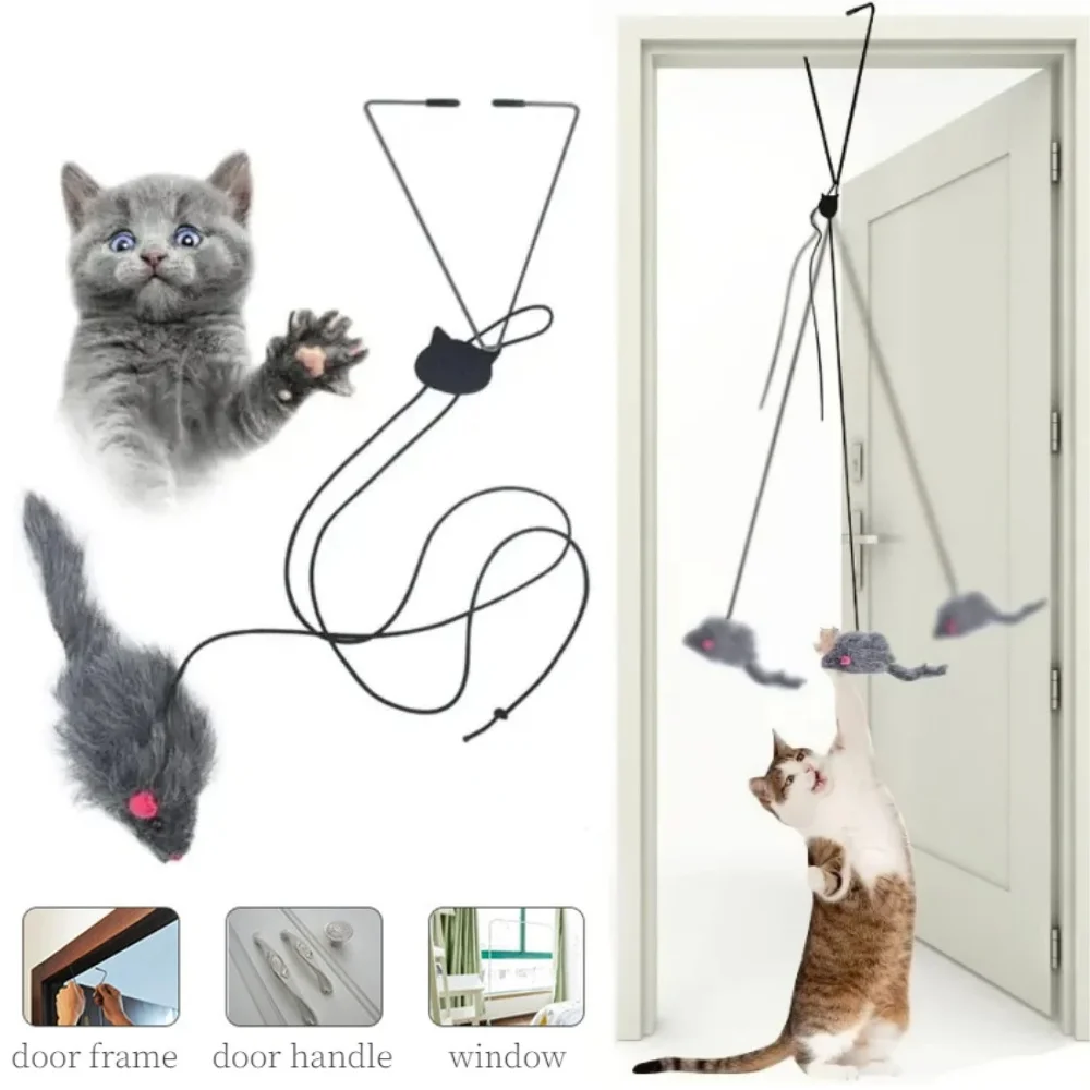 2.Manos libres: juguete para gatos oscilantes, este juguete para gatos se puede colgar en la parte superior del marco de la puerta, deja que el gato juegue solo, la cuerda es elástica, el pájaro oscilante atrae la atención del gato.