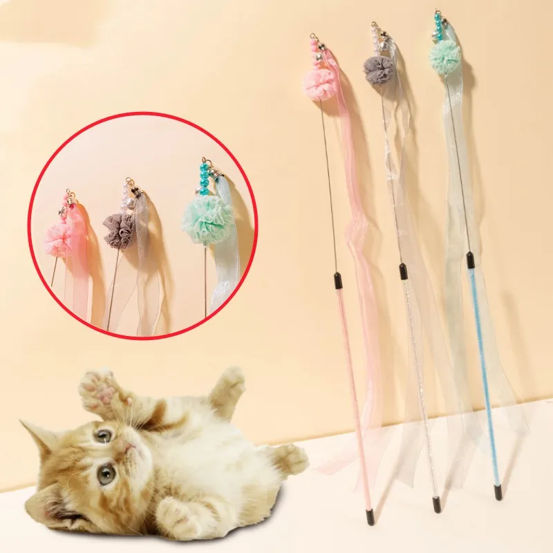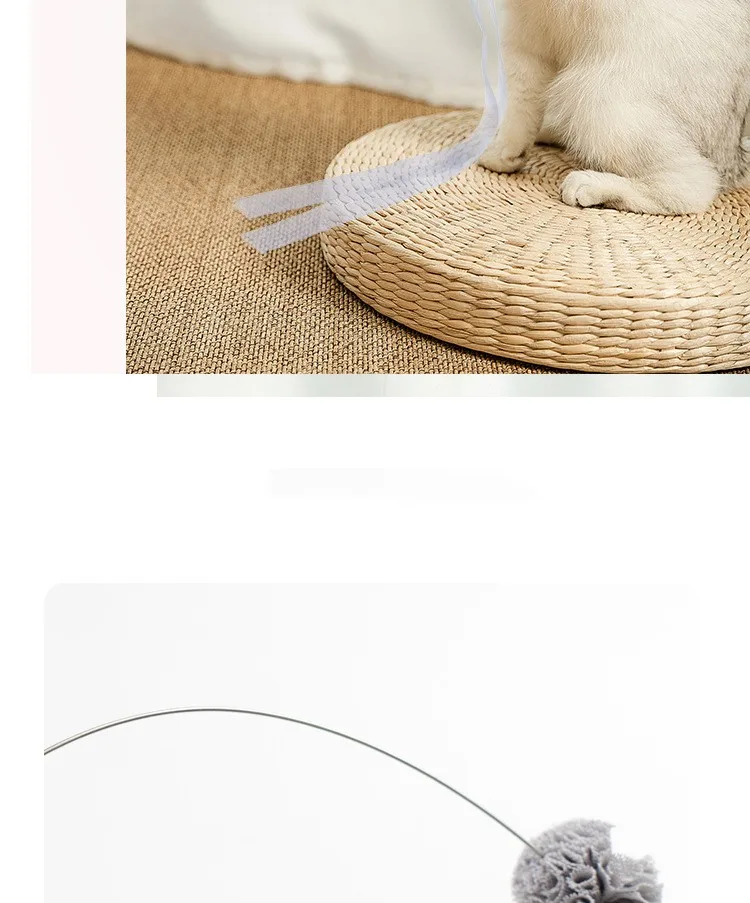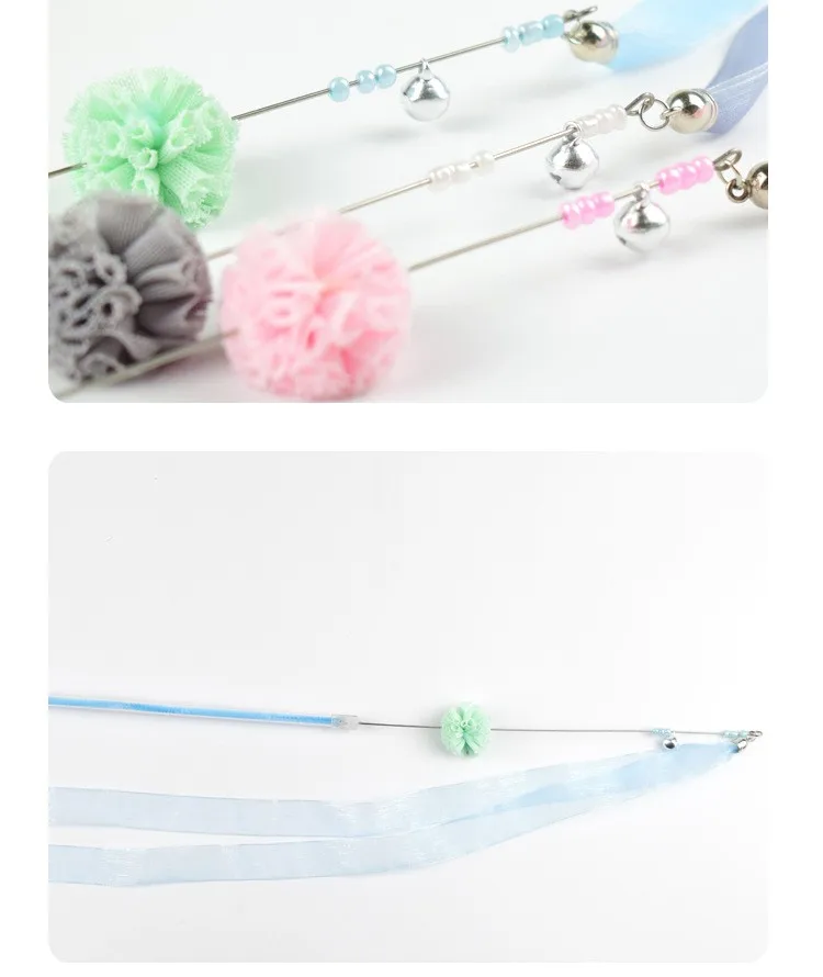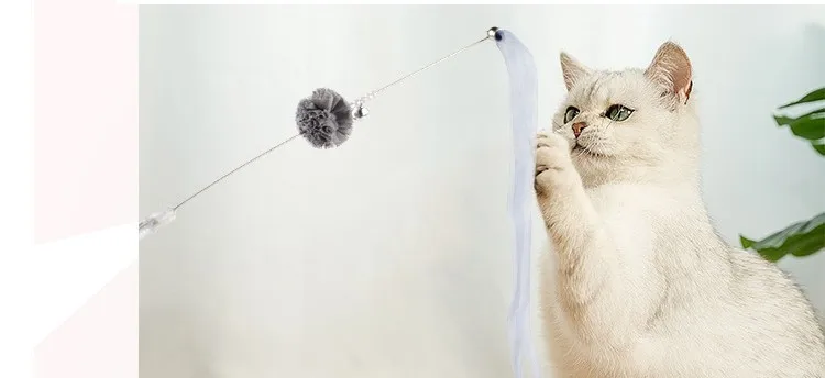 Juguete para gatos, cinta con borlas, palo de rompecabezas para gatos, juguetes interactivos de alambre de acero con mango largo, juguetes con borlas para gatos, palos, productos para mascotas