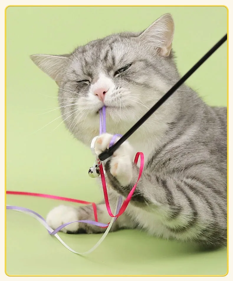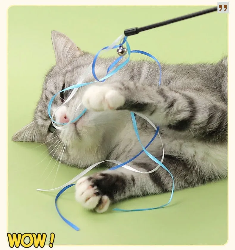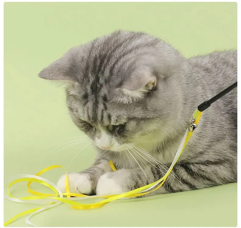 Juguete para gatos, cinta con borlas, palos de rompecabezas para gatos, juguetes interactivos con mango largo para gatos, juguetes con borlas de arcoíris para gatos, suministro para mascotas