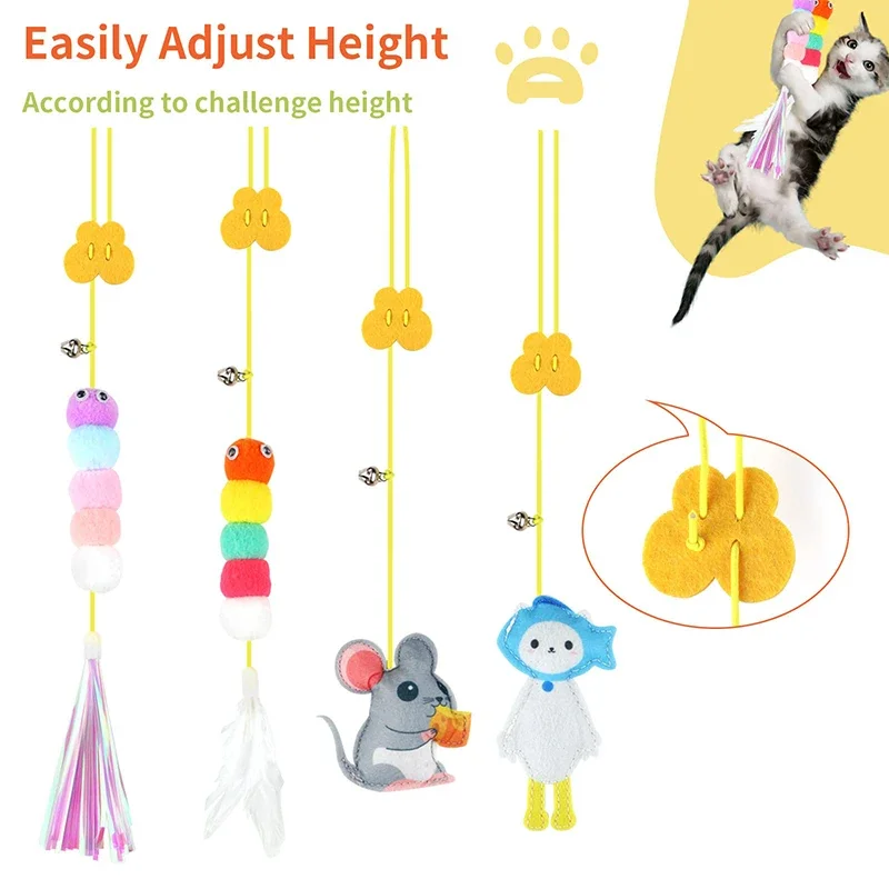 Un juguete genial para mascotas. Lo colgamos en la puerta y la gata juega sola con él cuando se aburre. Las plumas y los ojos se caen en unos días, pero el resto dura mucho tiempo.