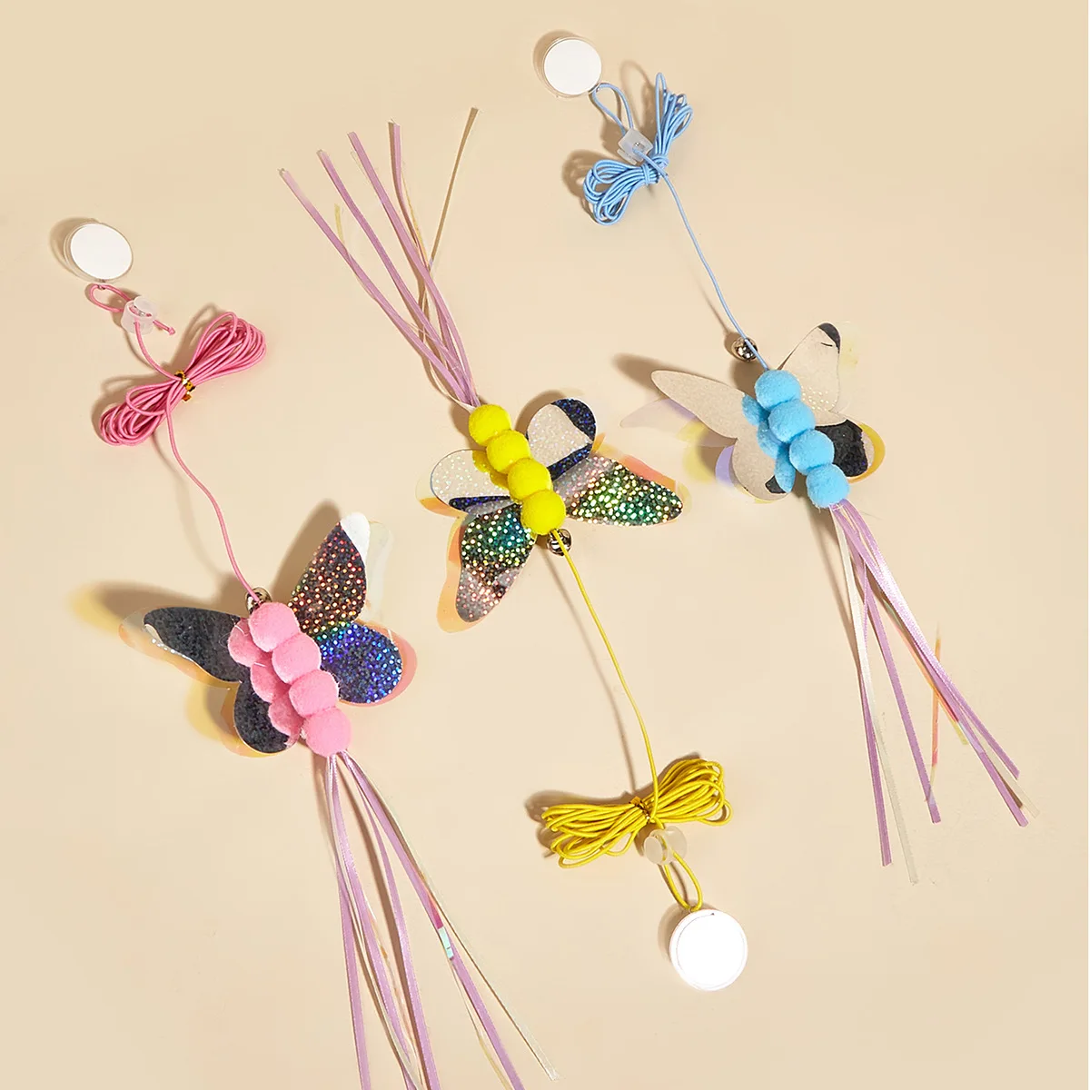 Juguete para gatos, columpio de mariposa, juguetes interactivos para colgar en la puerta, juguetes de plumas para gatos, juguete elástico ajustable para gatos, productos para mascotas
